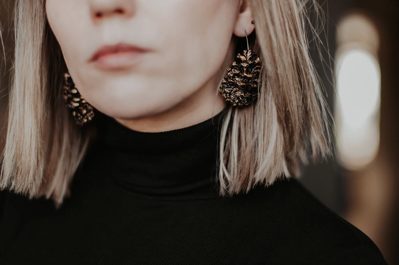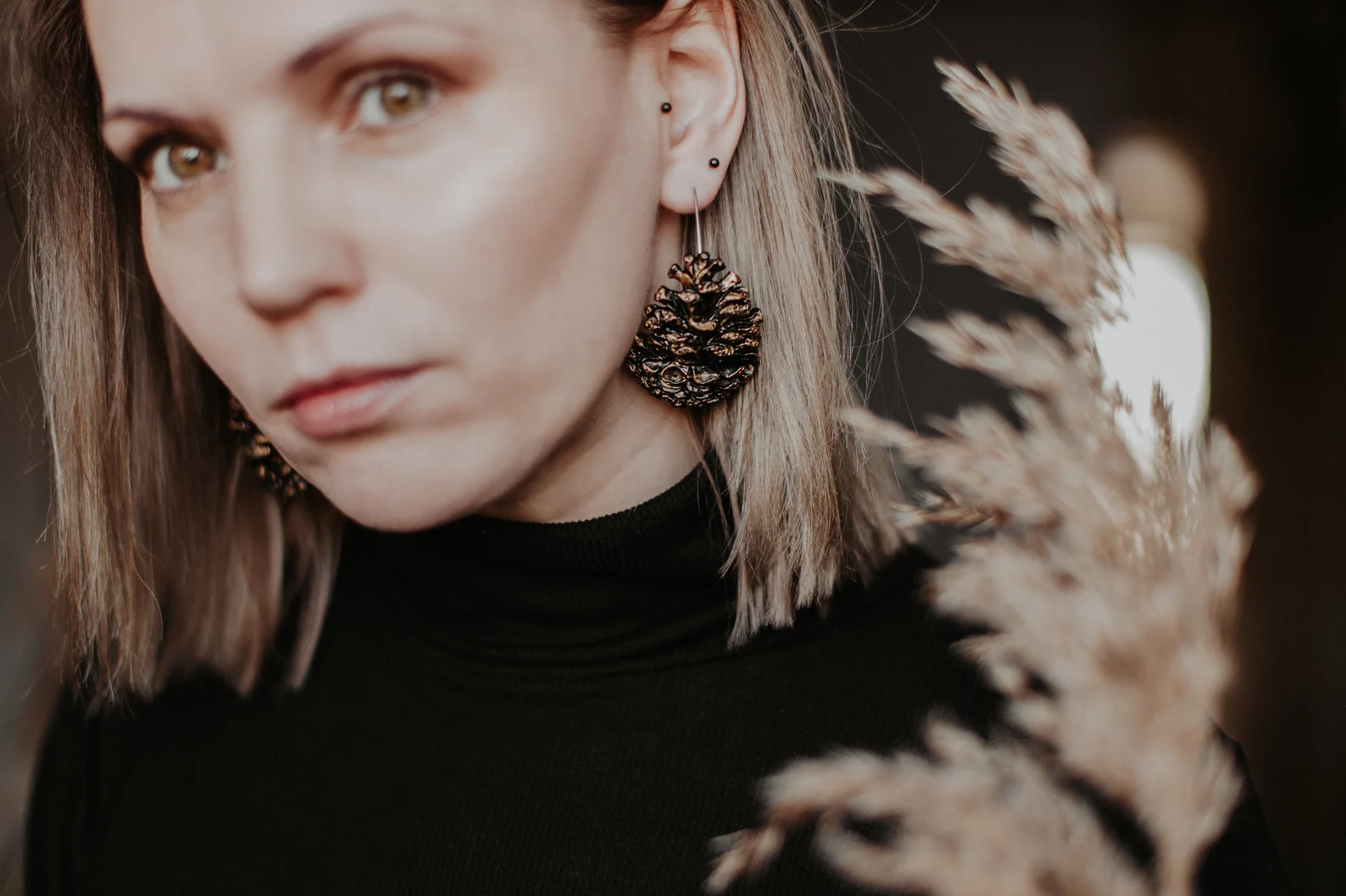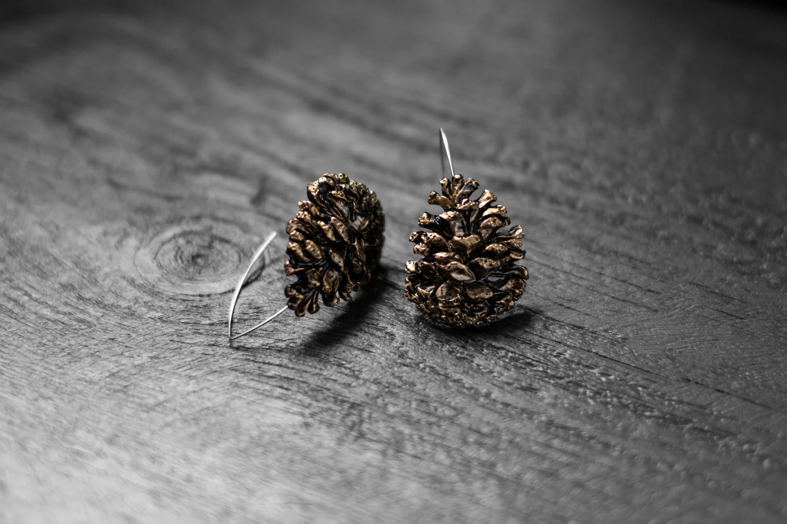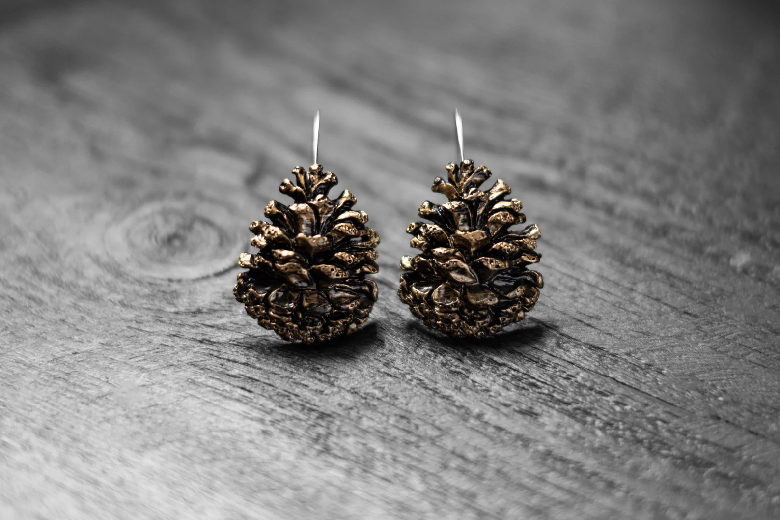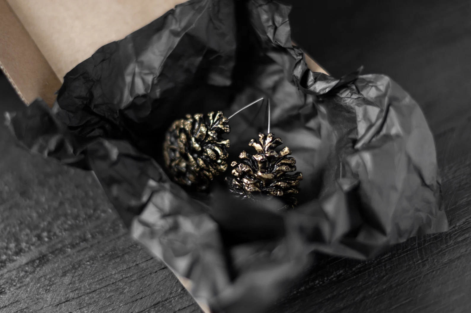 Āķu auskari “Čiekuri” izgatavoti no kvalitatīva polimērmāla un apgleznoti ar mirdzošu akrila krāsu, veidojot smalku čiekura faktūru. Nerūsējošā tērauda vai sudraba āķi. Katrs pāris ir roku darbs ar dabisku, harmonisku izskatu – ideāla izvēle tiem, kas novērtē meža iedvesmotu dizainu.