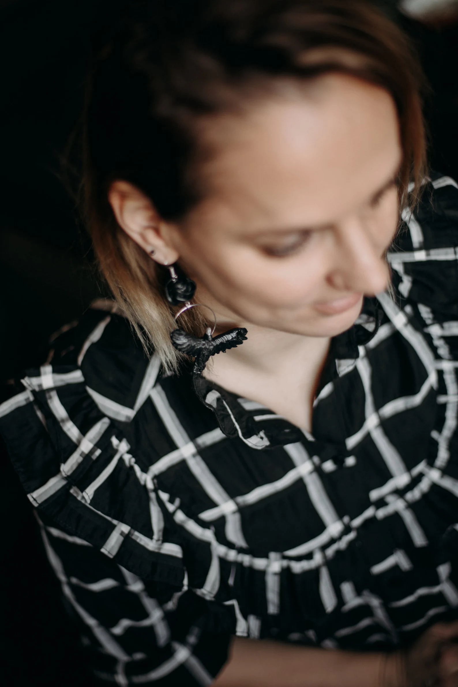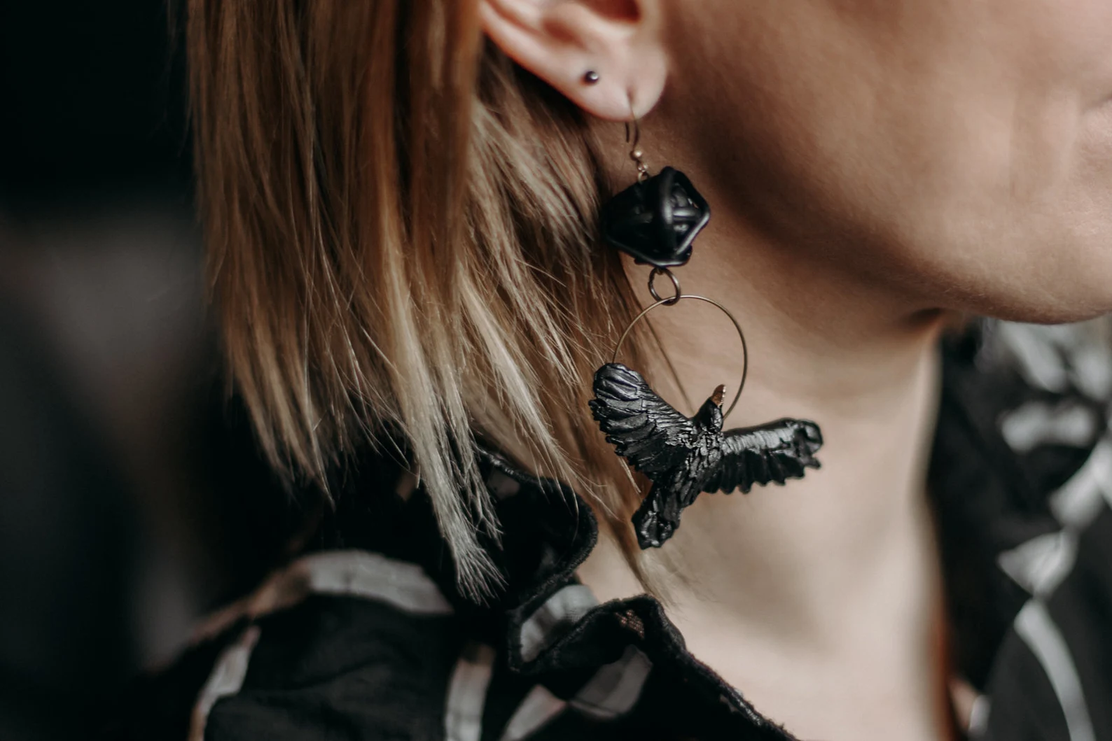 Āķu auskari “Ērglis” simbolizē brīvību, spēku un drosmi. Izgatavoti no kvalitatīva polimērmāla, ar misiņa āķiem. Smalki veidota forma un faktūra piešķir tiem dabisku un majestātisku raksturu. Šie auskari lieliski papildinās gan ikdienas, gan svētku tēlu.
