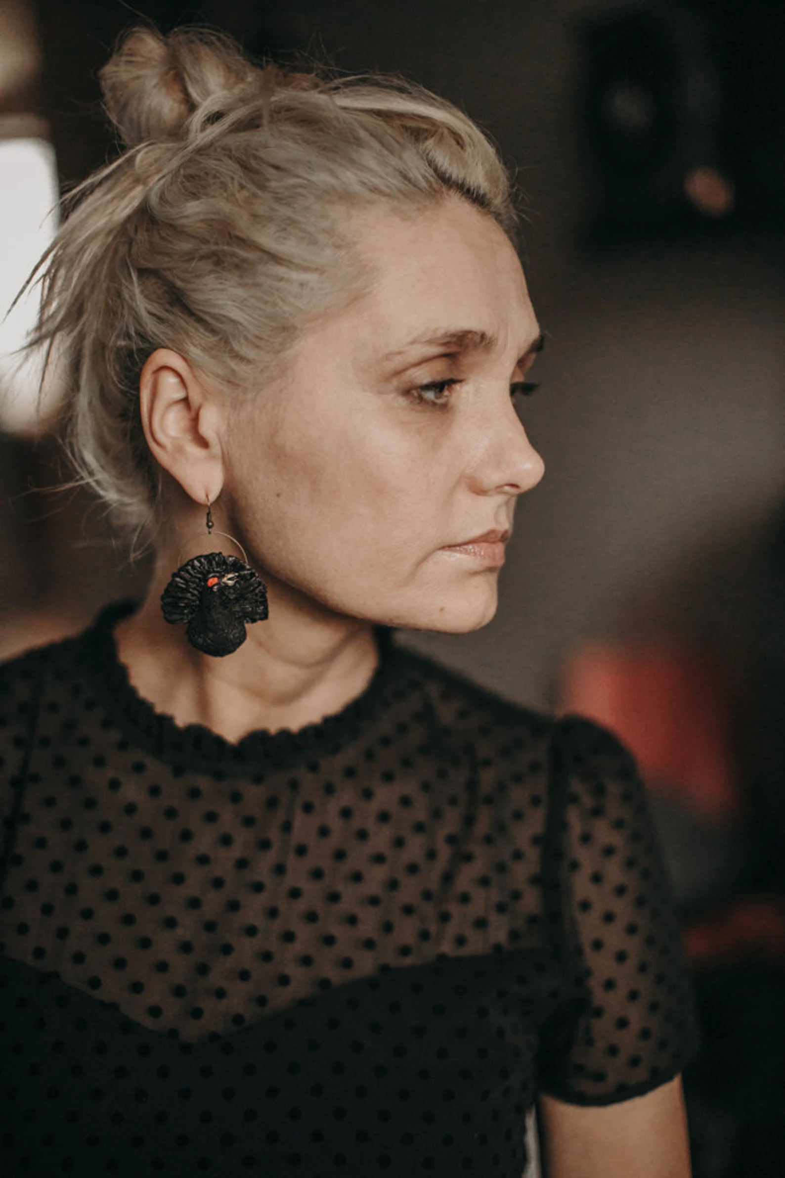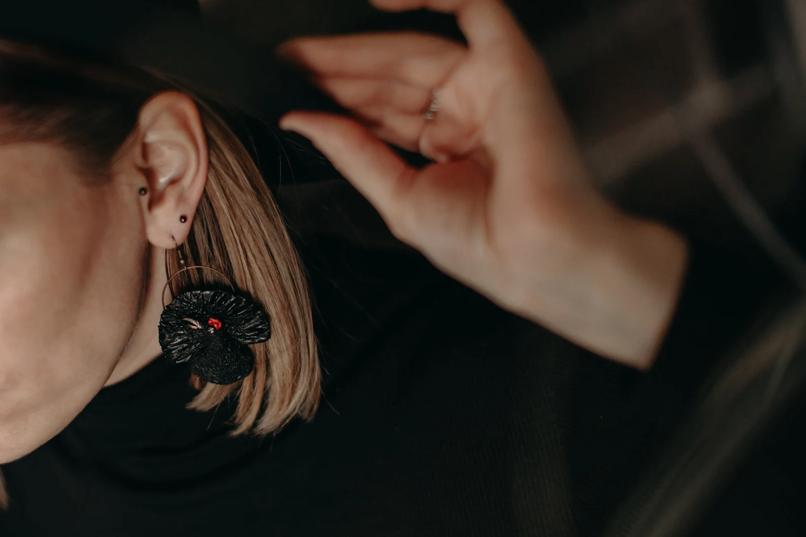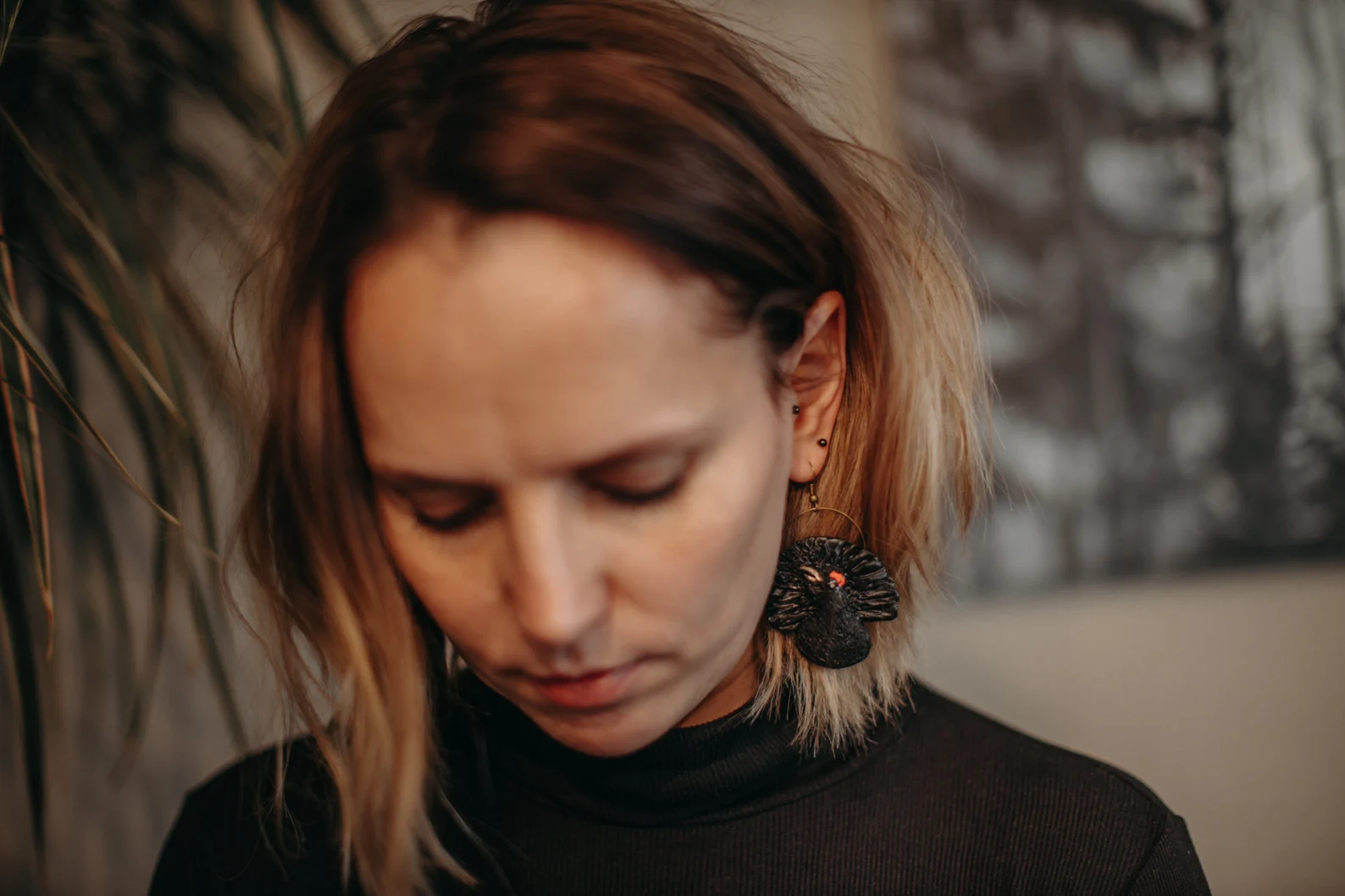 Āķu auskari “Mednis” ir roku darbs, kas apvieno dabas motīvus ar mūsdienīgu dizainu. Auskari izgatavoti no polimērmāla ar misiņa āķiem. Katrs pāris ir ar niansētu faktūru un formu. Piemēroti gan ikdienai, gan īpašiem notikumiem.