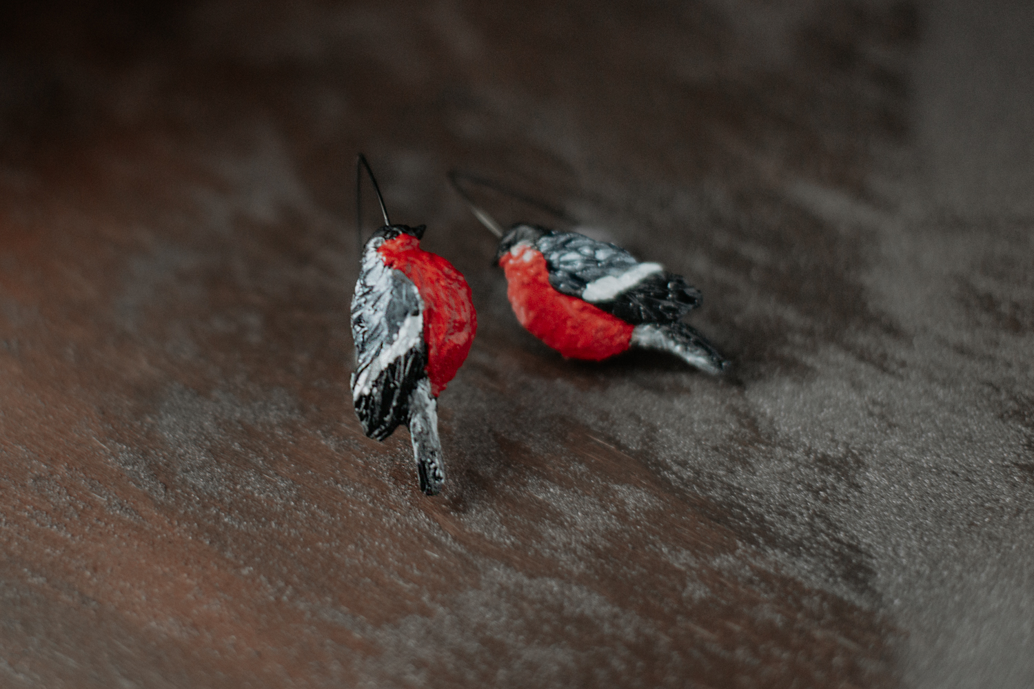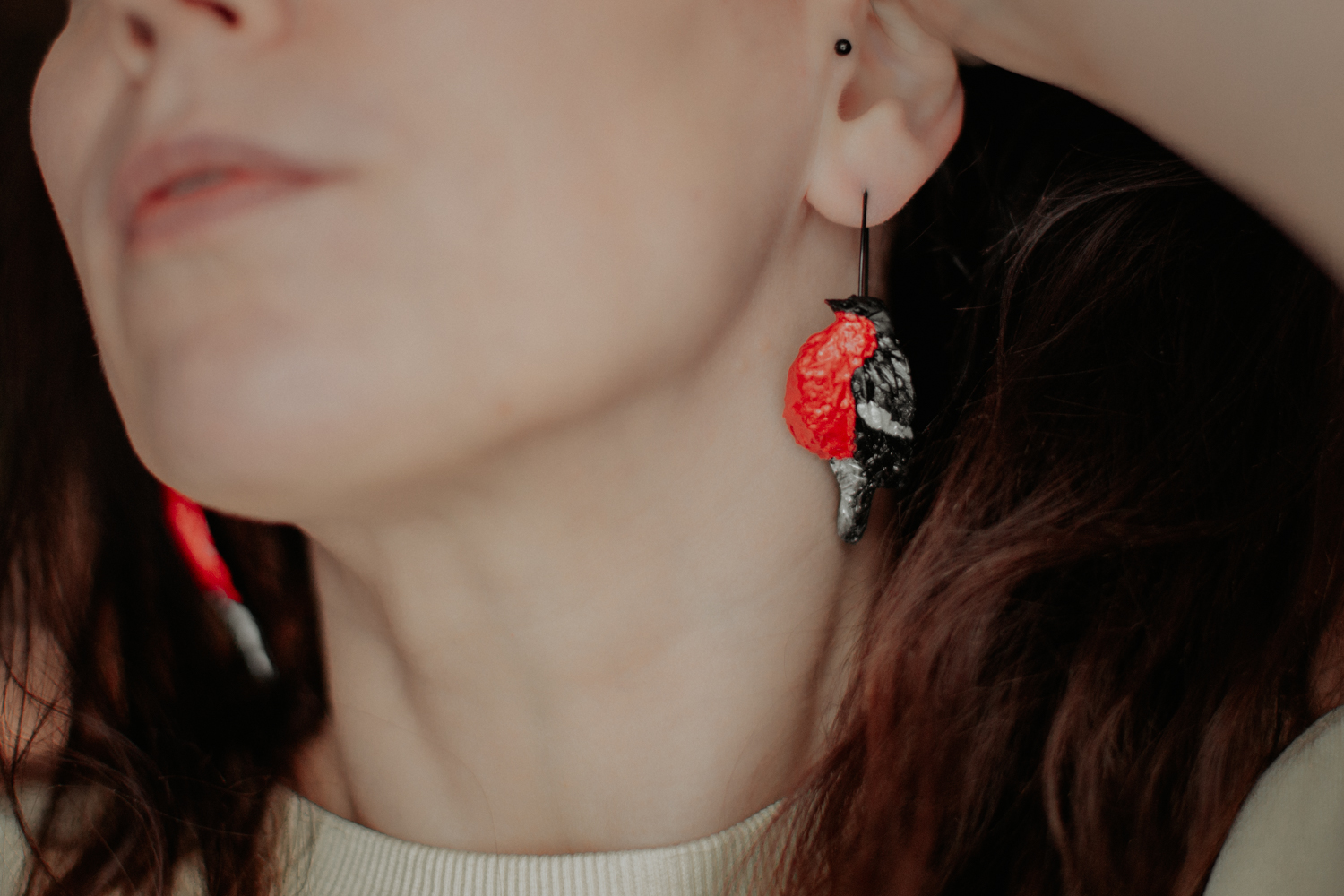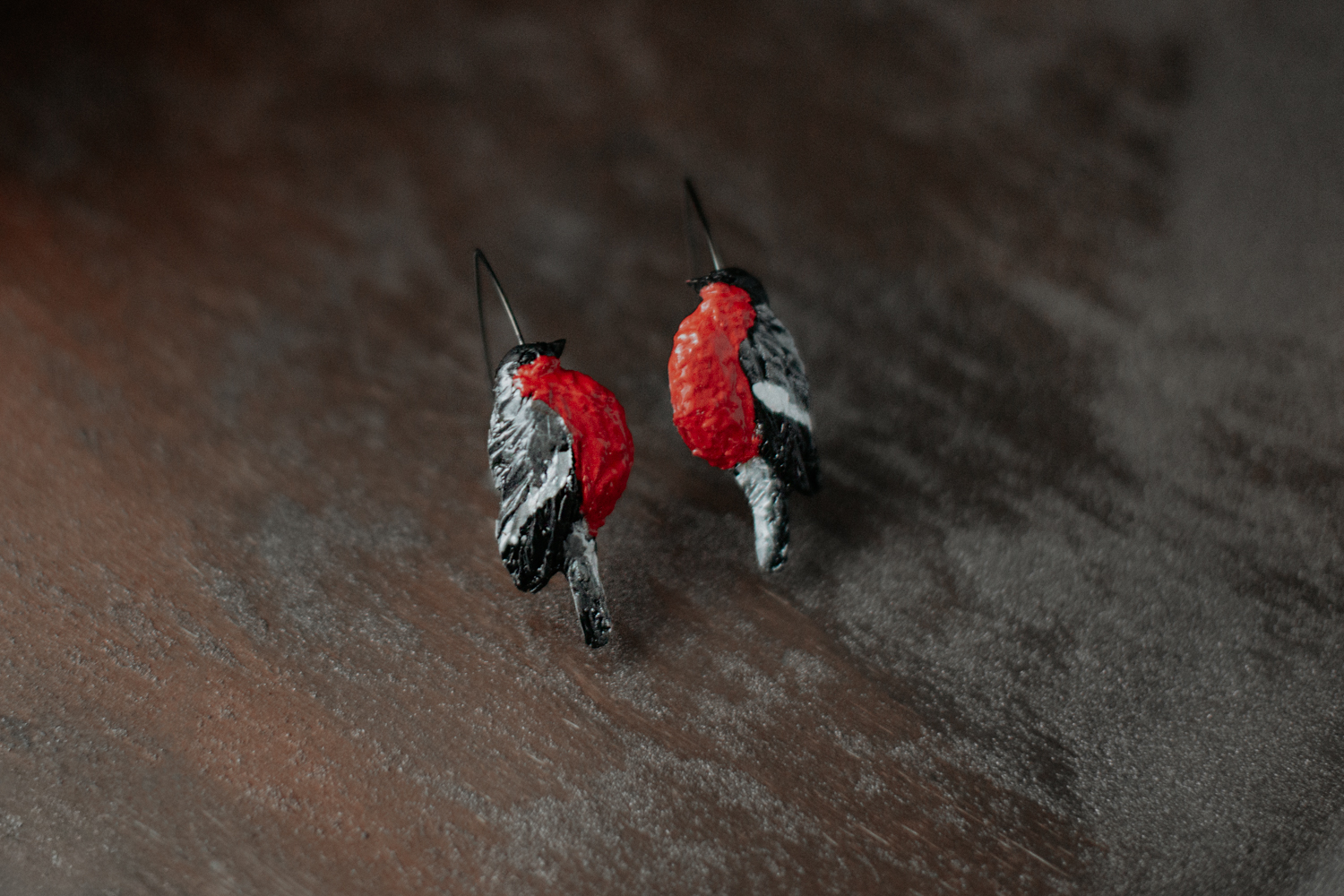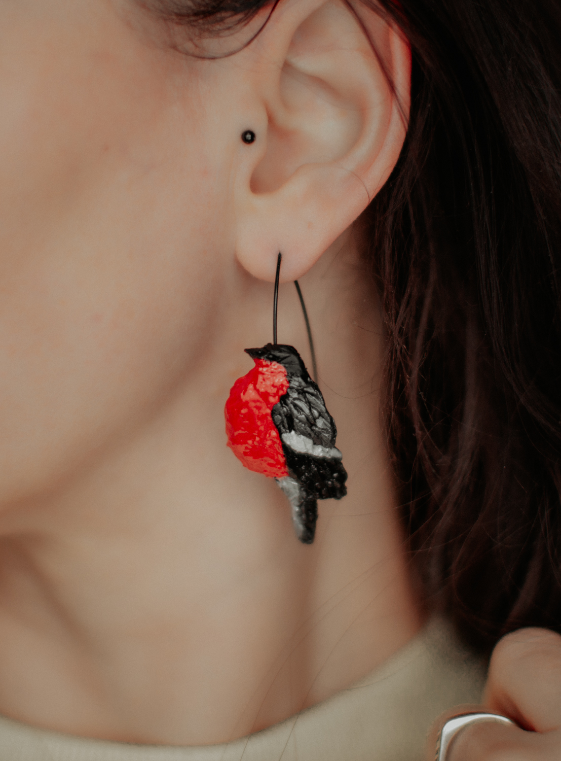Āķu auskari “Sarkankrūtītis” ir rota, kas iemieso dabas maigumu. Izgatavoti no kvalitatīva polimērmāla, apgleznoti ar akrila krāsu, tie ir viegli, izturīgi un komfortabli valkāšanai visas dienas garumā. Melni nerūsējošā tērauda vai sudraba āķi. Ideāla izvēle dabas rotu cienītājiem.