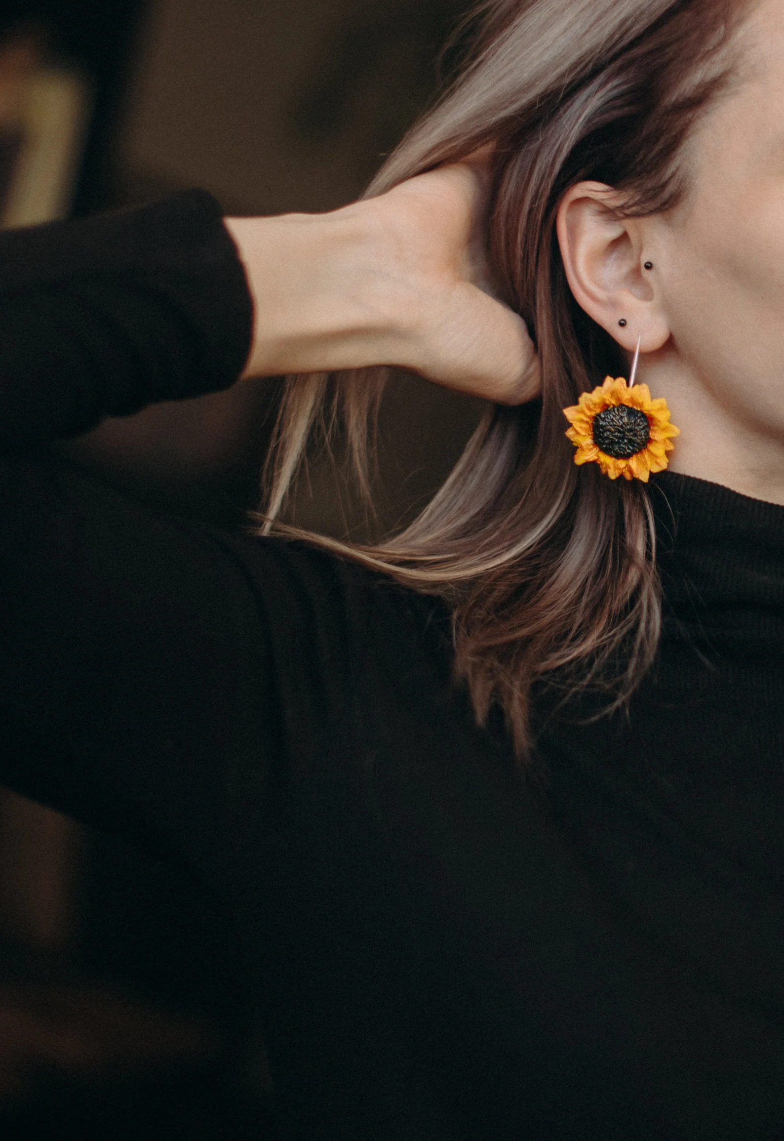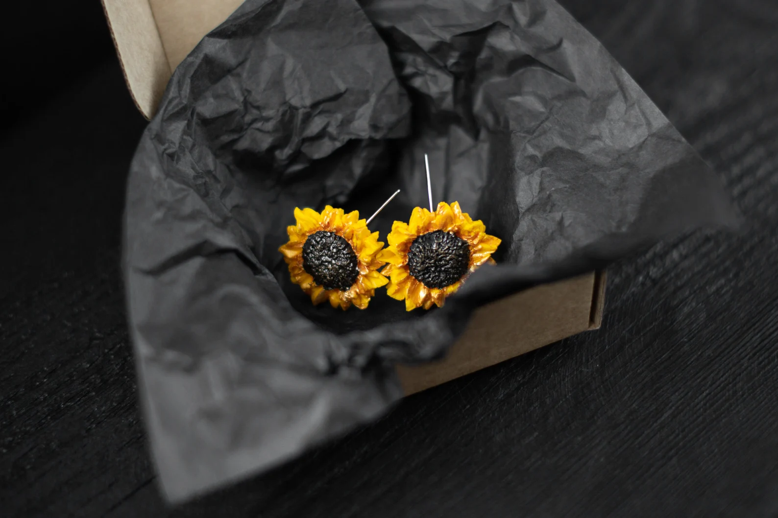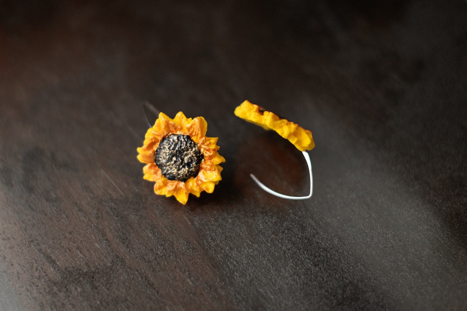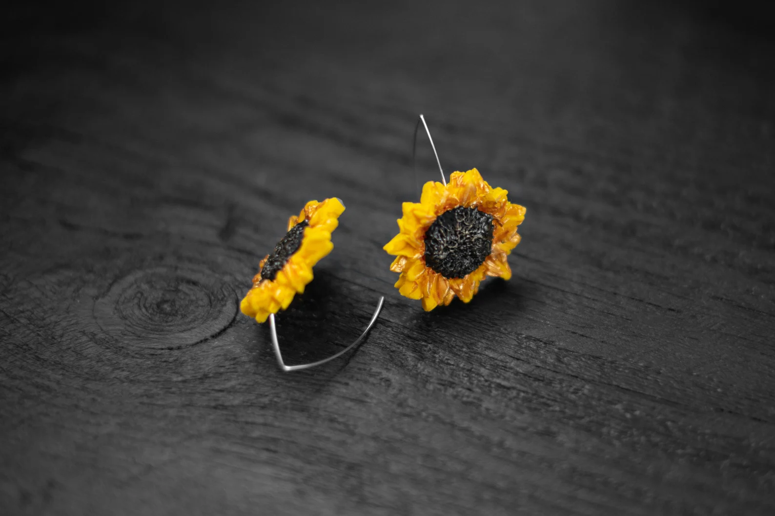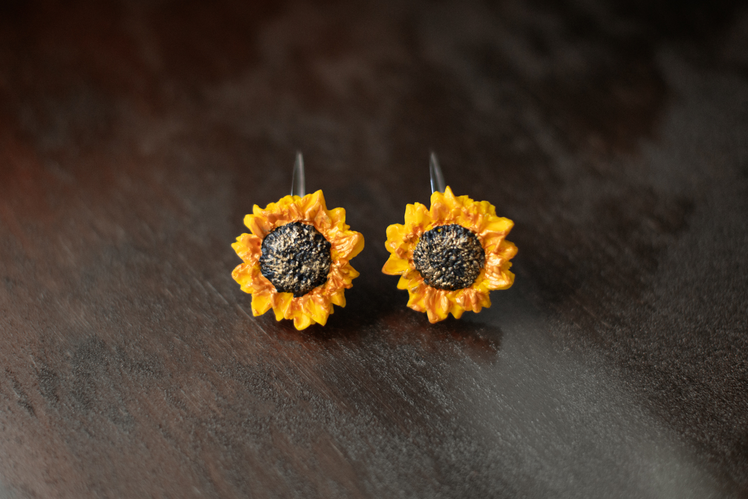 Āķu auskari “Saulespuķe” simbolizē gaismu un pozitīvu enerģiju. Tie izgatavoti no kvalitatīva polimērmāla un apgleznoti ar akrila krāsu. Nerūsējošā tērauda vai sudraba āķi.