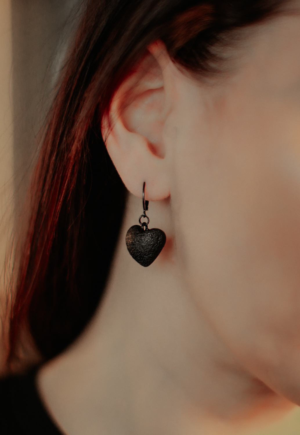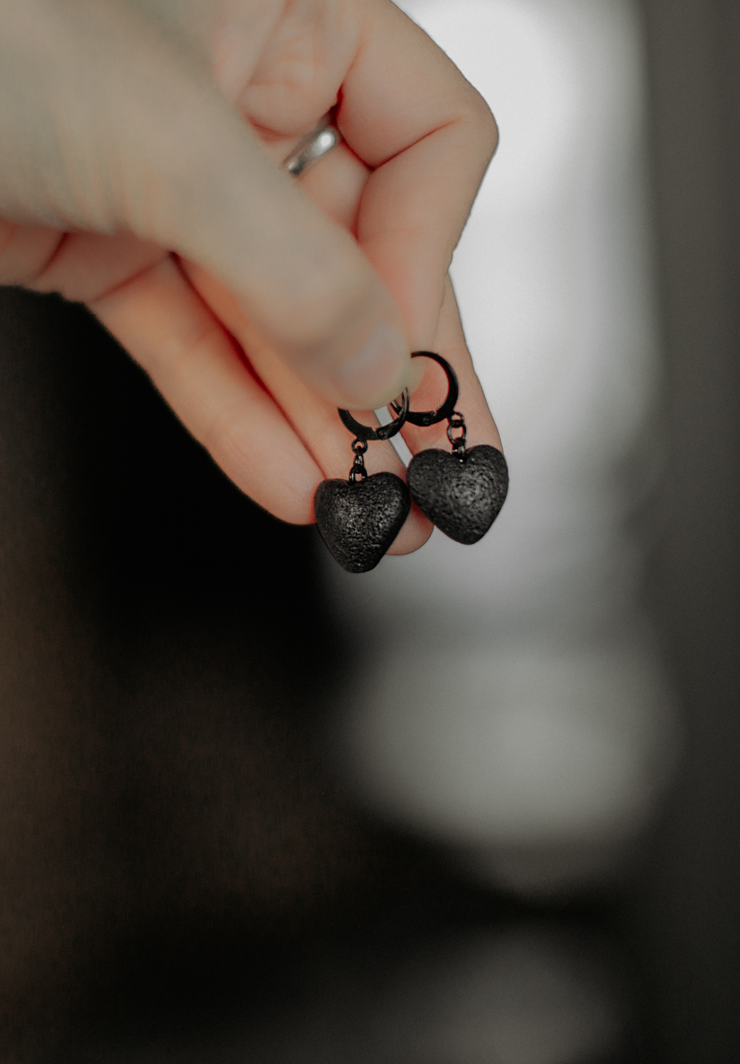 Āķu auskari “Melnās meža sirsniņas”, matēti melnā krāsa piešķir tiem izsmalcinātu un modernu raksturu, savukārt vieglais materiāls nodrošina ērtu nēsāšanu visas dienas garumā. Auskariem ir metāla āķi. Katrs pāris tiek rūpīgi izstrādāts ar rokām, padarot katrus auskarus mazliet unikālus. Tie ir pietiekami neuzkrītoši ikdienai, bet tajā pašā laikā stilīgi arī īpašiem notikumiem.
