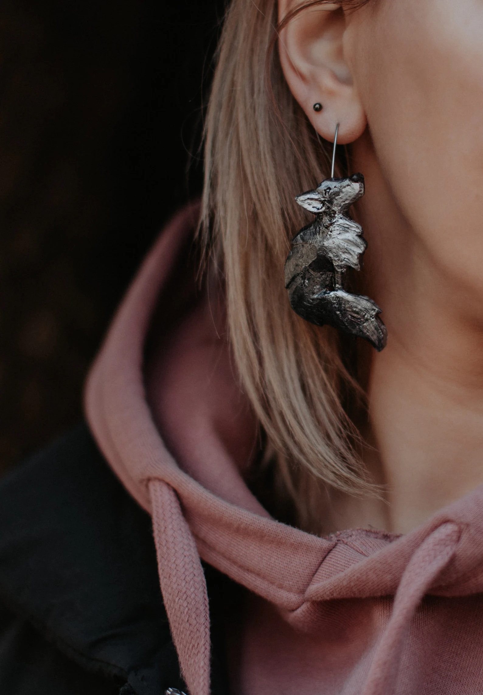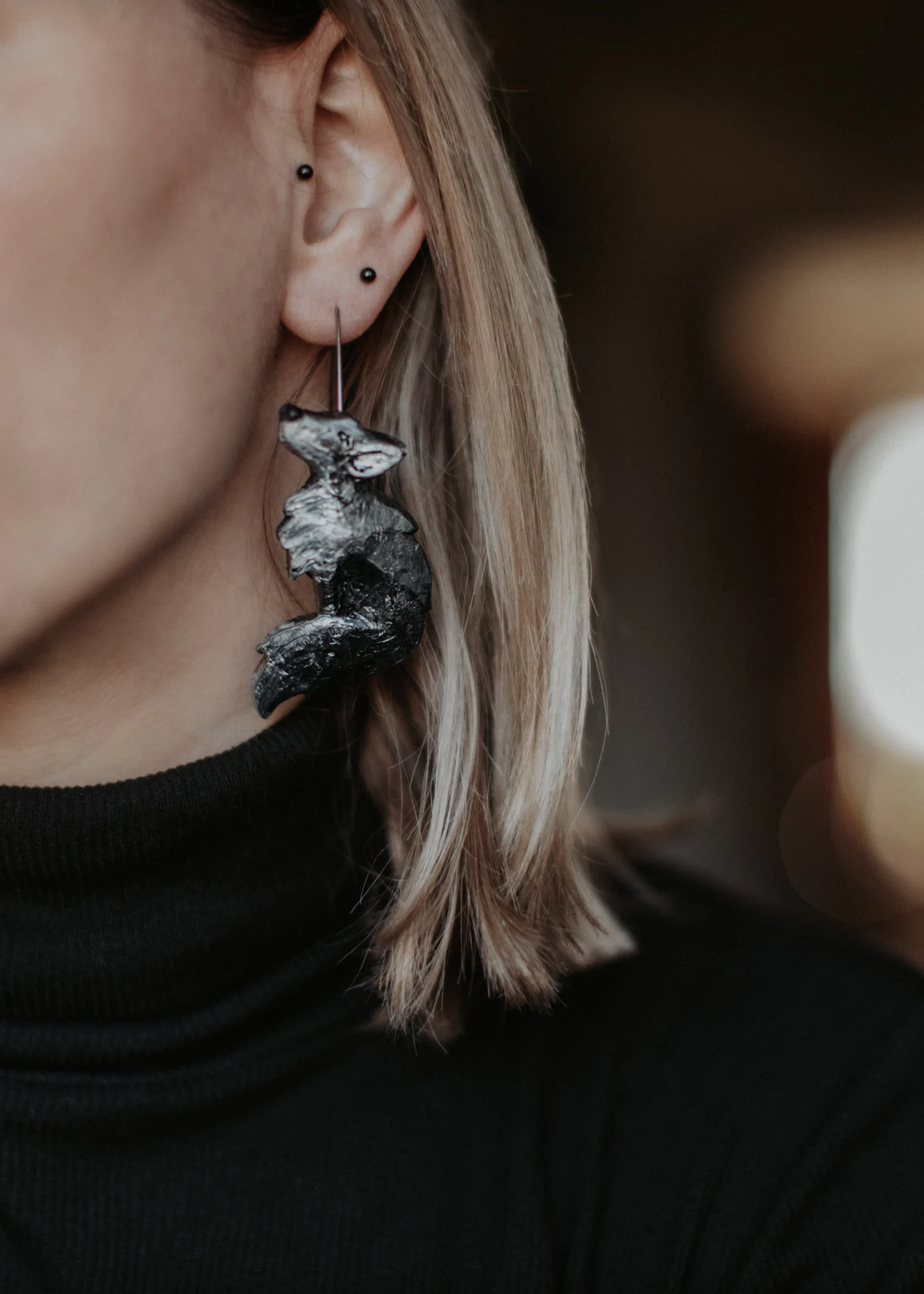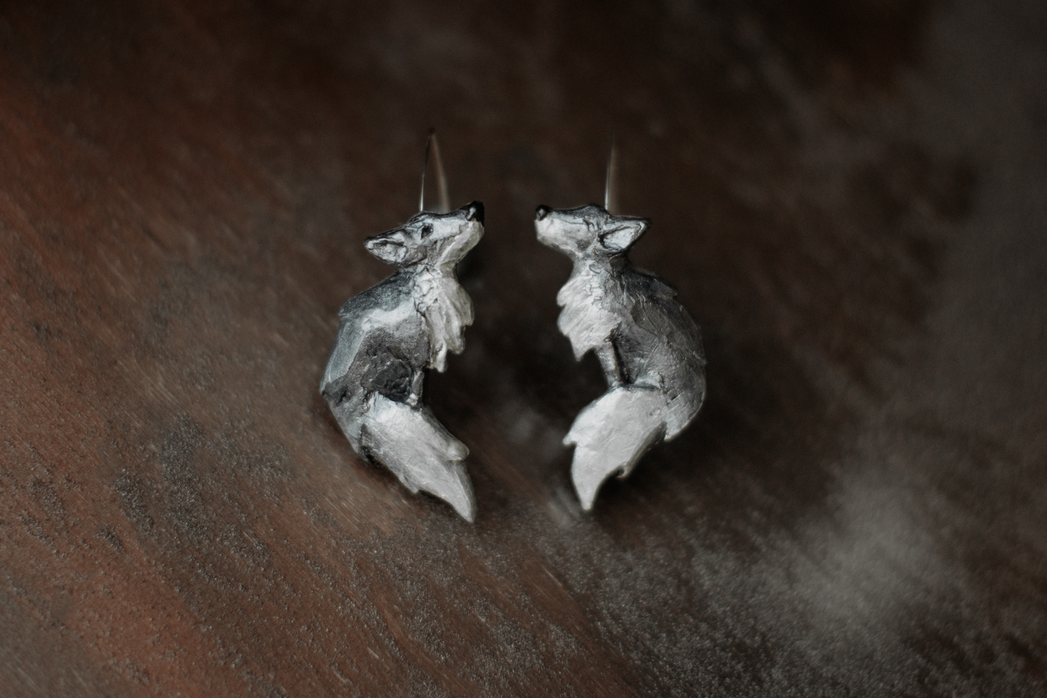 Āķu auskari “Vilks” atspoguļo brīvības un spēka simbolu. Roku darbs no kvalitatīva polimērmāla, apgleznoti at mirdzošu akrila krāsu. Nerūsējošā tērauda vai sudraba āķi. Ideāli piemēroti tiem, kas vēlas izcelt savu individualitāti un piešķirt tēlam dabas spēka pieskārienu.