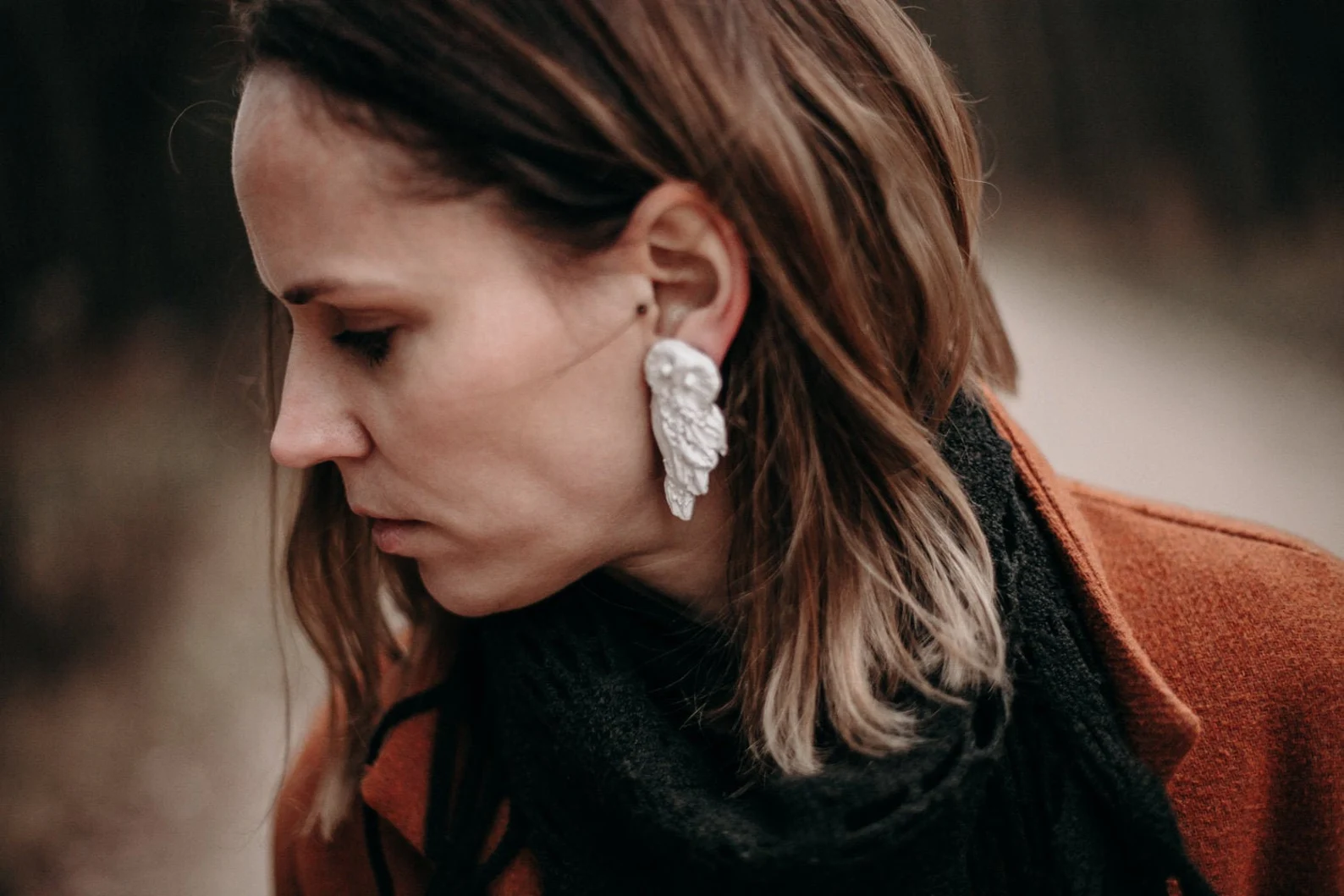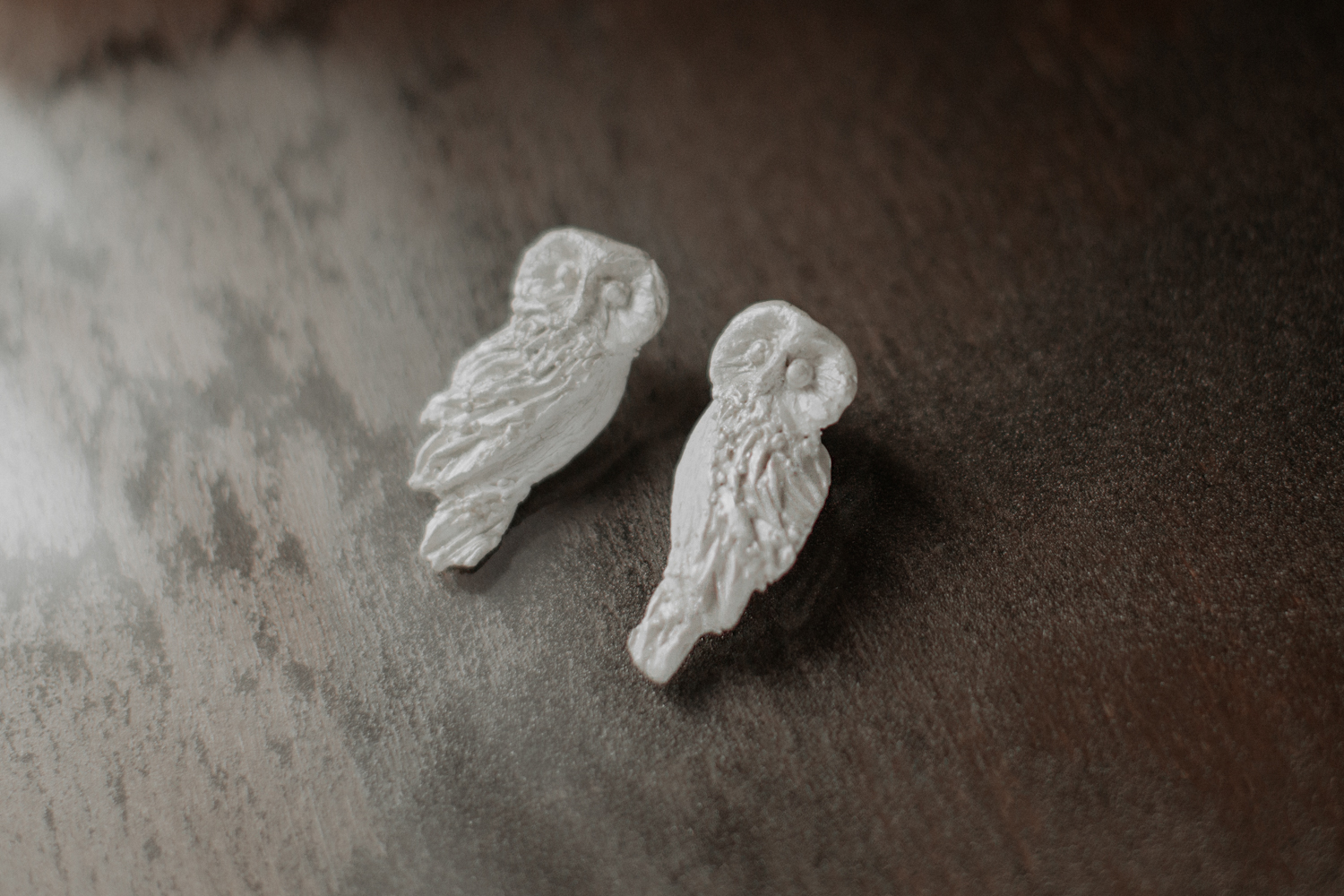Auskari “Baltā pūce” ir roku darināti, kas apvieno dabas iedvesmotu dizainu un eleganci. Ar sudraba nagliņu, veidoti no kvalitatīva polimērmāla, apleznoti ar akrila krāsu. Baltās pūces tēls simbolizē gudrību un spēku, piešķirot tēlam īpašu nozīmi. Ideāli piemēroti kā unikāla dāvana vai kā izsmalcināts papildinājums personīgajam stilam. Pieejami arī klipši.