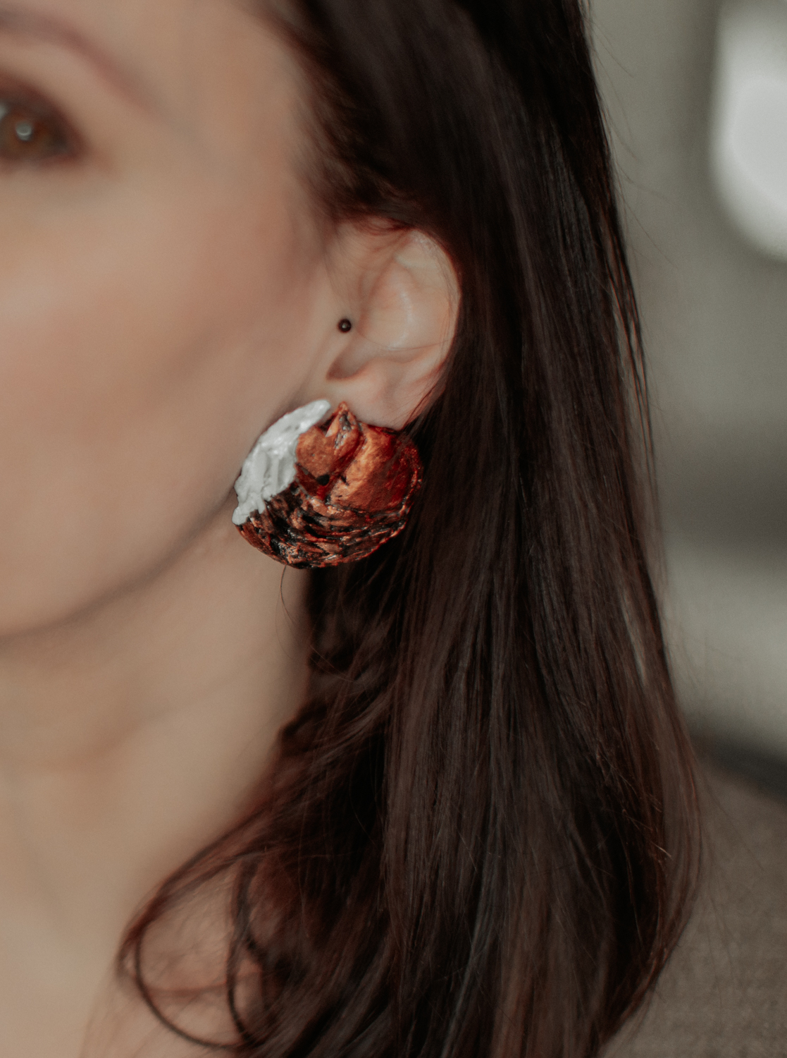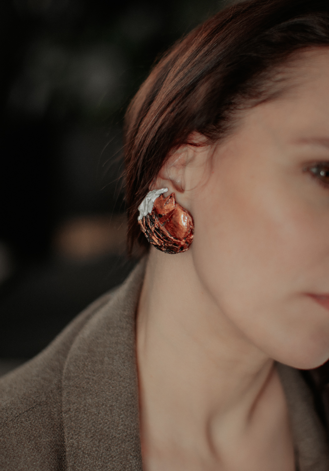 Auskari ar sudraba nagliņu, veidoti no kvalitatīva polimērmāla, apleznoti ar mirdzošu akrila krāsu. To dizains ir elegants, piemērots dažādiem stiliem un notikumiem. Pieejami arī klipši.