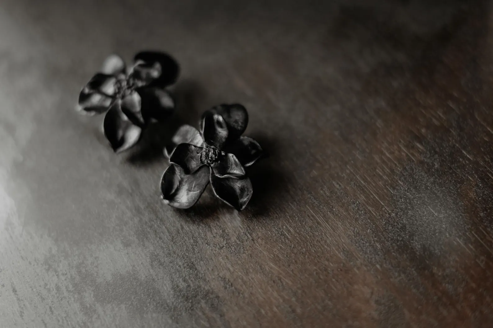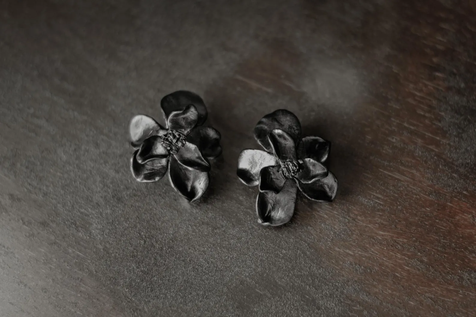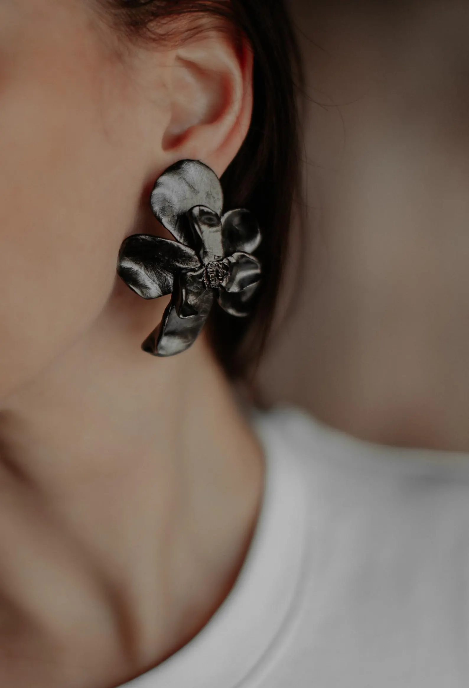 Auskari ar sudraba nagliņu, veidoti no kvalitatīva polimērmāla, apgleznoti ar mirdzošu akrila krāsu. Auskariem ir mirdzošs pelēks/melns tonis, kas mainās dažādos apgaismojumos, piešķirot īpašu šarmu un unikalitāti. Katrs pāris ir roku darbs. Šis aksesuārs ir lieliski piemērots gan ikdienai, gan svinīgiem notikumiem, piešķirot tēlam smalku eleganci. Pieejami arī klipši.