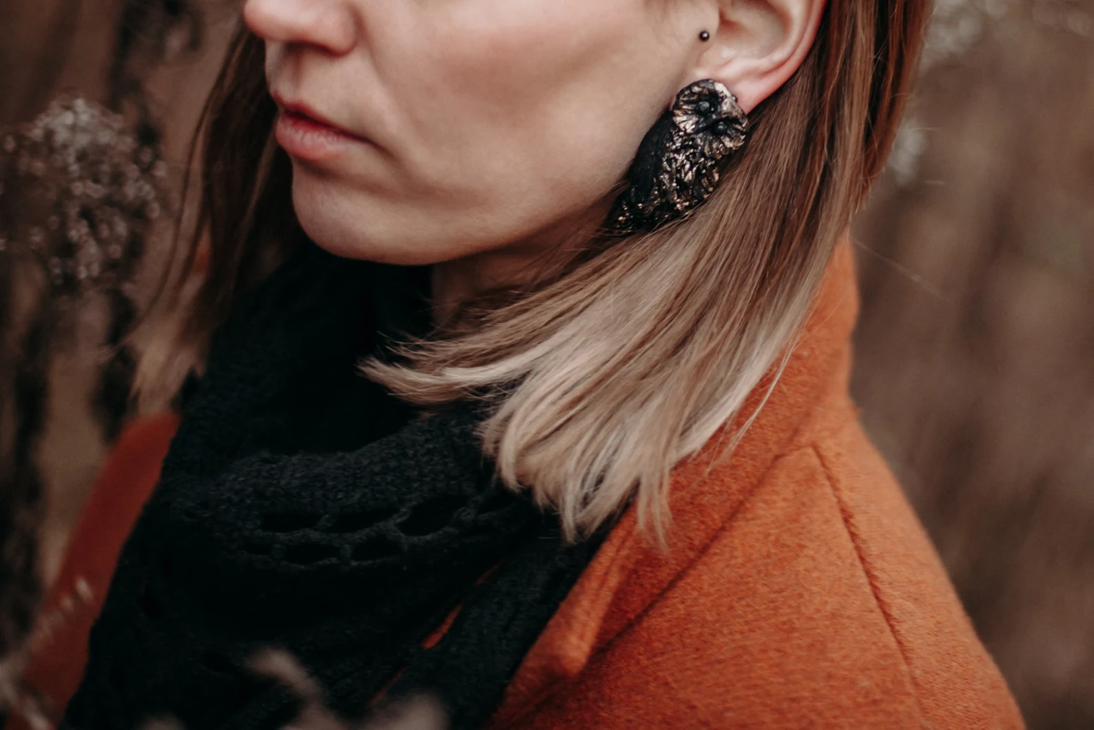 Auskari “Meža pūce” ir roku darināti, kas apvieno dabas iedvesmotu dizainu un eleganci. Ar sudraba nagliņu, veidoti no kvalitatīva polimērmāla, apleznoti ar mirdzošu akrila krāsu. Pūces tēls simbolizē gudrību un spēku. Pieejami arī klipši.