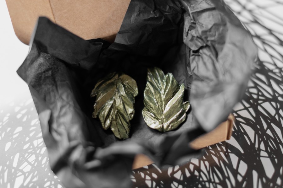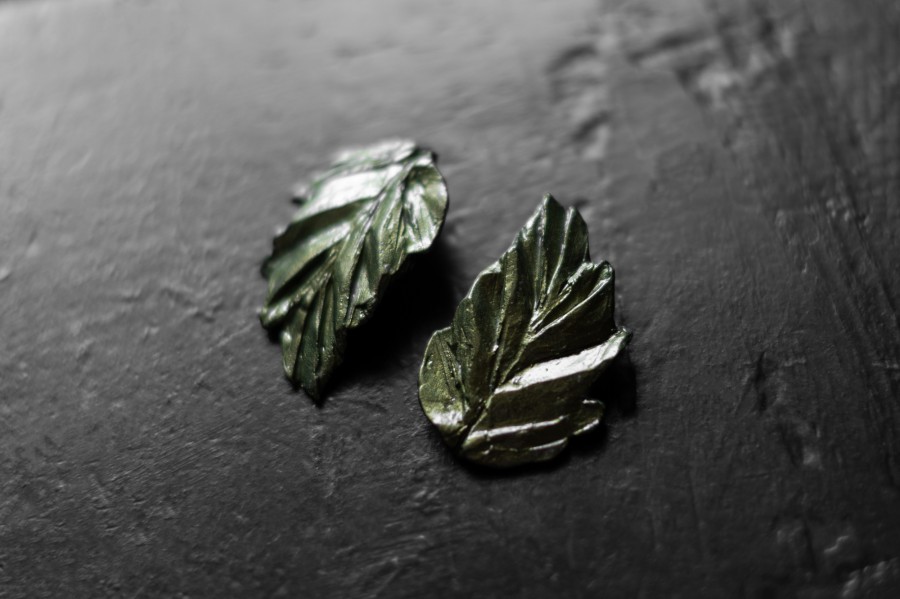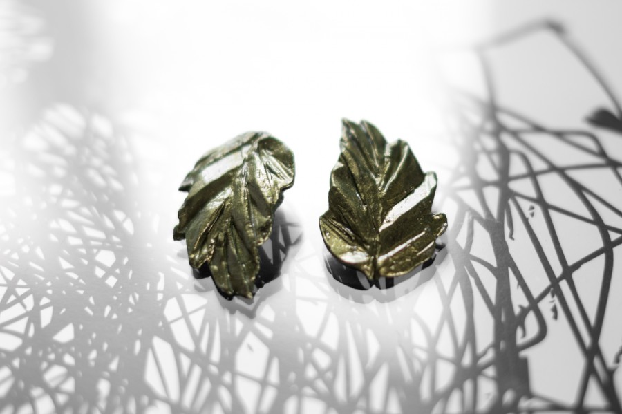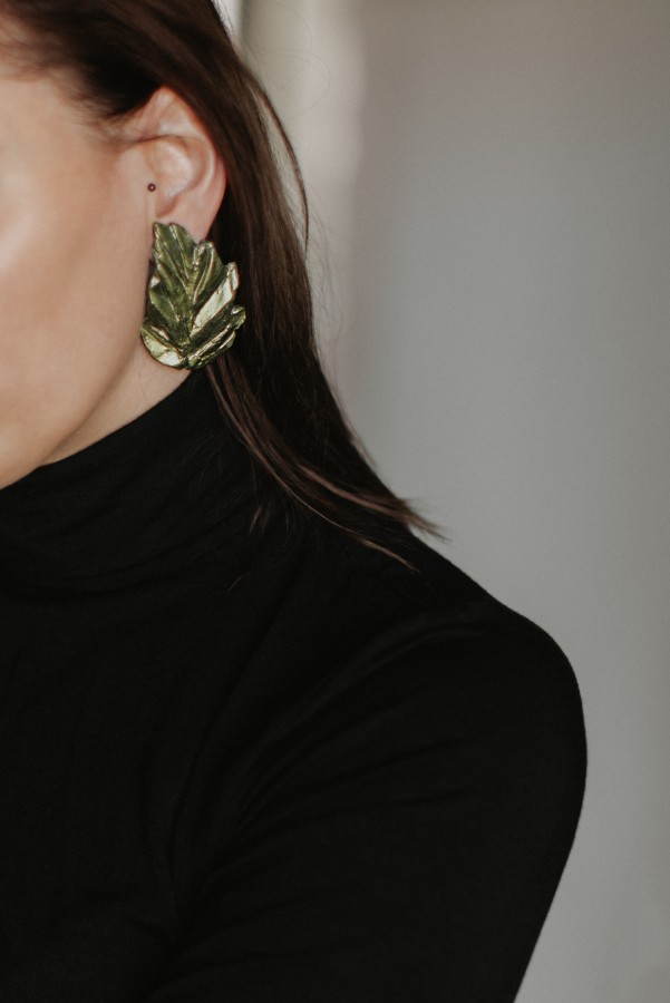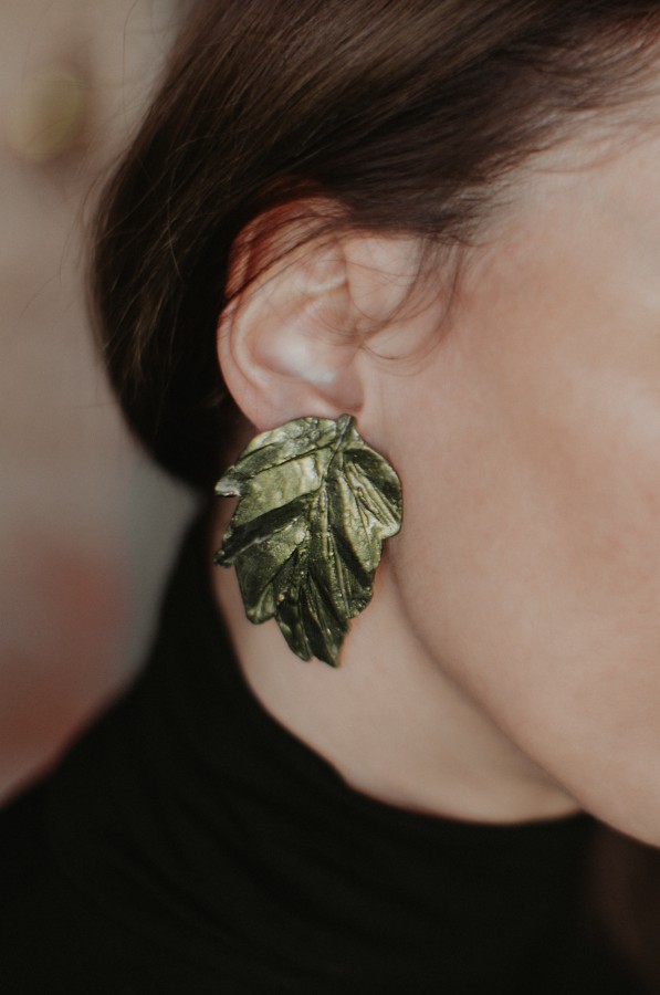 Auskari ar sudraba nagliņu, veidoti no kvalitatīva polimērmāla, apgleznoti ar midzošu akrila krāsu. Roku darbs nodrošina katram pārim unikālu izskatu, padarot tos par elegantu akcentu gan ikdienā, gan īpašos notikumos. Pieejami arī klipši.