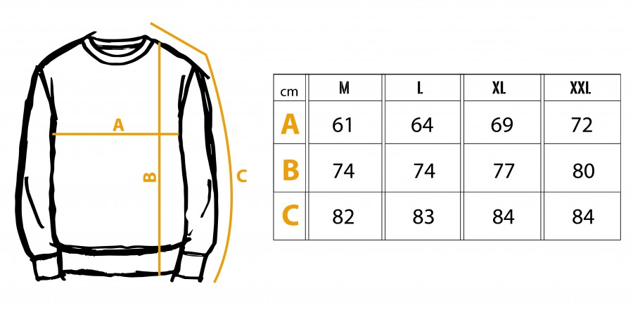 Pievērsiet uzmanību izmēru tabulai, jo šie džemperi ir brīvāki piegriezumā – ja vēlaties ciešāku piegulumu, izvēlieties izmēru mazāku nekā parasti.