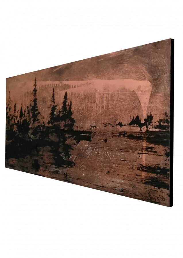 Glezna “Agrā rītā” ir oriģināls dekoratīvs interjera mākslas darbs, kas ataino dabas pirmo rīta gaismu. Gleznas mirdzuma efekts un maigās krāsu pārejas rada svaiguma, miera un harmonijas noskaņu, kas mainās līdz ar apgaismojumu.