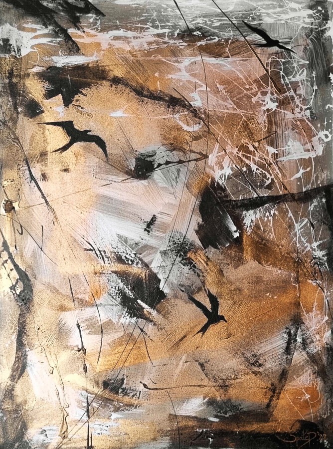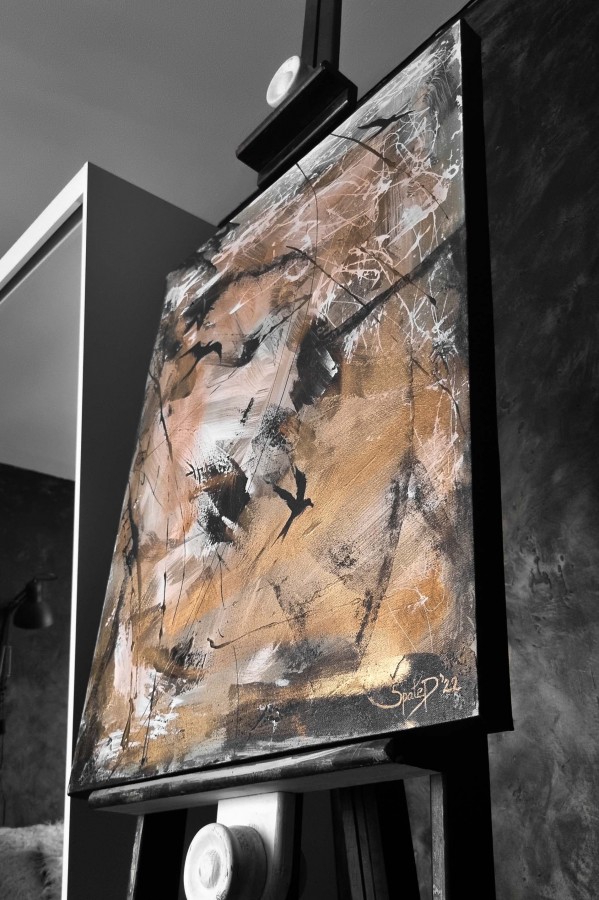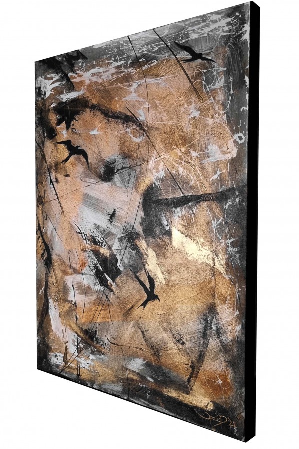 Glezna “Kalnos” ir oriģināls interjera mākslas darbs modernisma stilā, kas attēlo kalnu varenību un dabas spēku caur stilizētu formu un niansētu krāsu spēli. Izmantotā jauktā tehnika uz audekla piešķir gleznai faktūru un dziļumu, radot sajūtu par kalnu gaisu un plašumu.