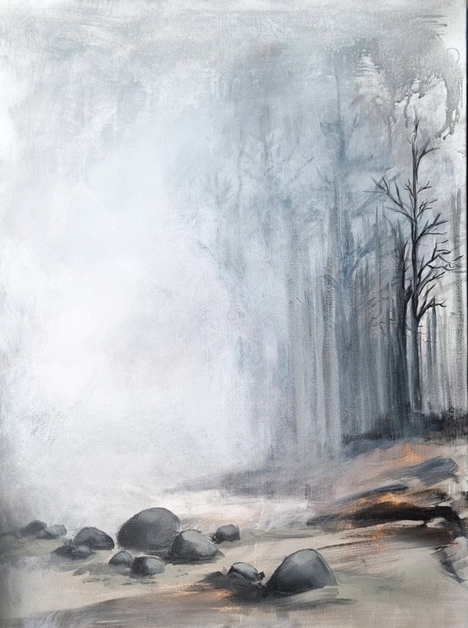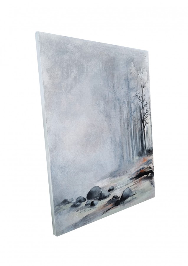Izmantota jaukta tehnika uz audekla, kas izceļ faktūru un detaļas, radot reālistisku, bet poētisku noskaņu. “Krasts” simbolizē mieru, stabilitāti un dabas ritmu, padarot to par harmonisku akcentu jebkurā interjerā.