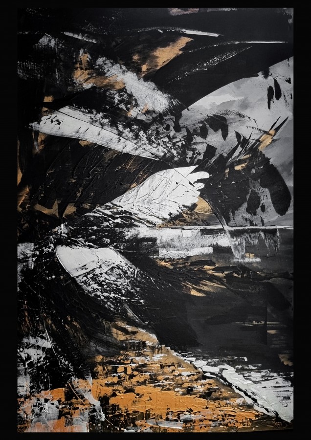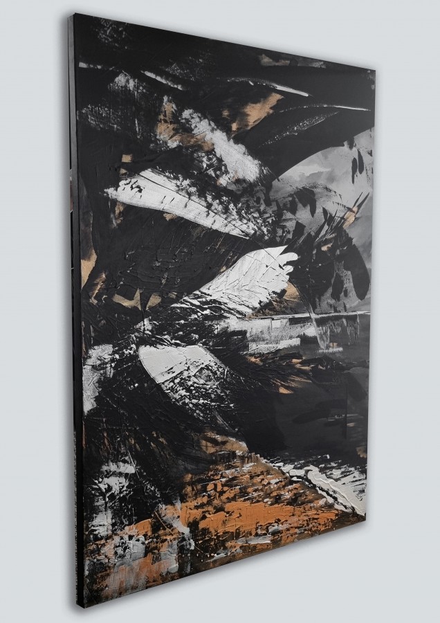 Radīta jauktā tehnikā uz audekla, tā piesaista skatienu ar mirdzuma efektu un bagātīgu faktūru. Lieliski iederēsies mājīgā interjerā, radot dabas un vakara gaismas līdzsvaru.