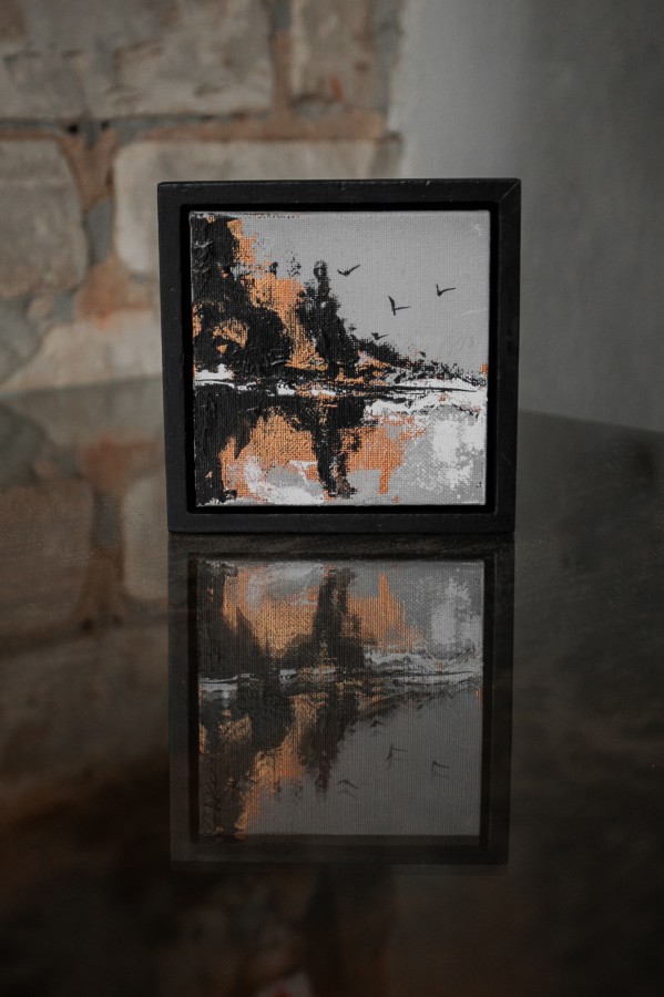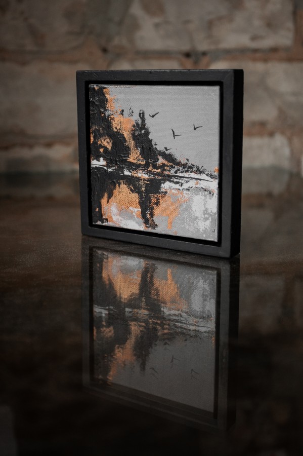Glezna “Upes krastā” – oriģināls akrila darbs, kas modernisma un stilizācijas stilā ataino dabas mieru un ūdens plūduma harmoniju. Glezna rada līdzsvara un klusuma sajūtu, piešķirot telpai siltu un dabisku noskaņu.