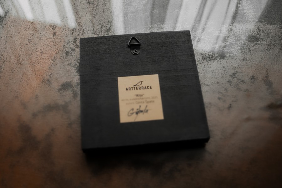 Izmērs: 10 × 10 cm (kopā ar rāmi 12 × 12 cm)