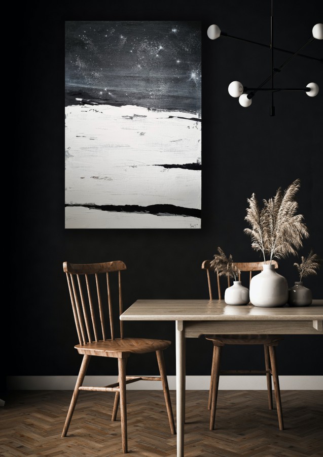Glezna “Ziemeļblāzma” ir oriģināls dekoratīvs interjera mākslas darbs. Tā ataino mirdzošo krāsu un kustības spēli, kas piešķir telpai dziļumu, enerģiju un mieru vienlaikus.