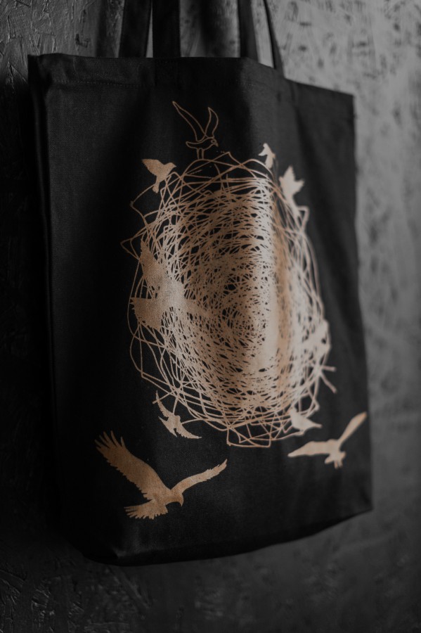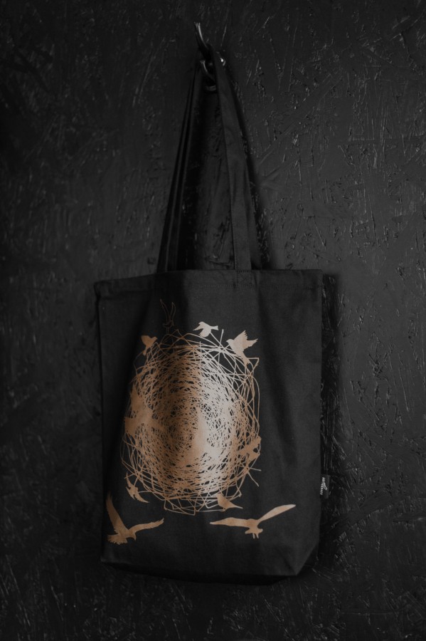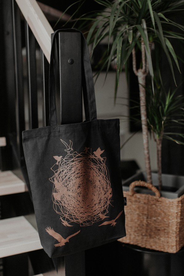 Iepirkumu soma radīta no kokvilnas (auduma blīvums 270g/m2), tā nodrošina izturību. Sietspiedes tehnikā radītais zīmējums piešķir īpašu mirdzumu, kas maina toņu nianses atkarībā no apgaismojuma.