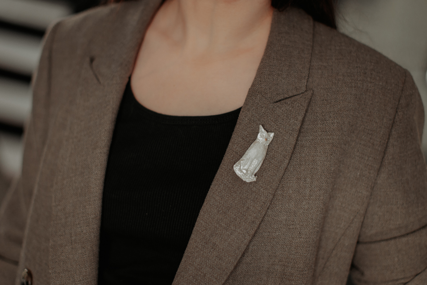 Piespraude “Baltais kaķis” elegants aksesuārs. Izgatavots no polimērmāla, apgleznots ar akrila krāsu. Lieliski papildina gan klasisku apģērbu, gan ikdienas stilu. Ideāla dāvana kaķu saimniekiem vai tiem, kas vēlas savam tēlam piešķirt nelielu rotaļīgu akcentu.