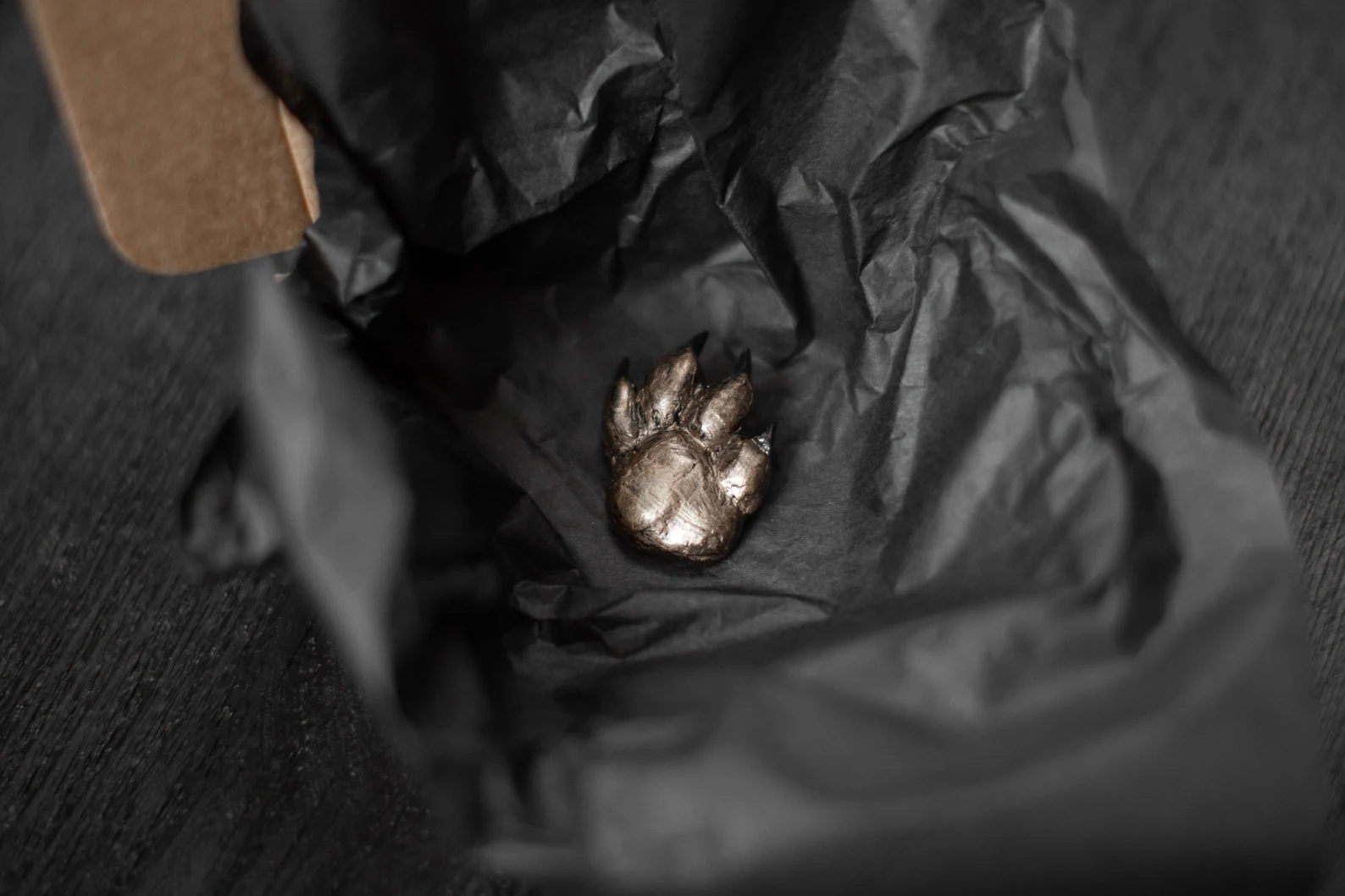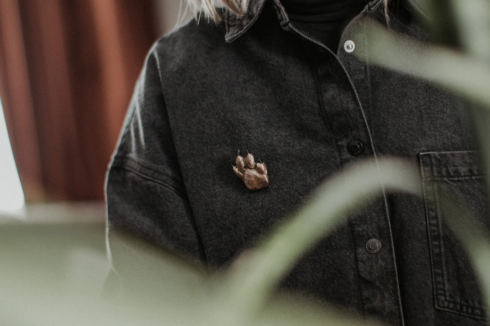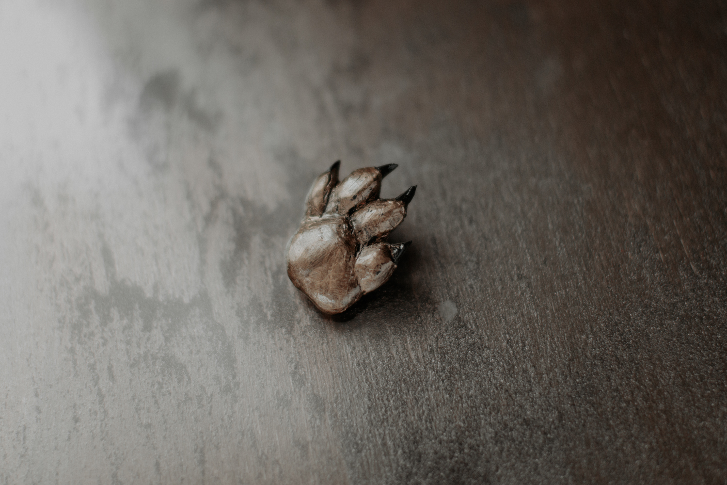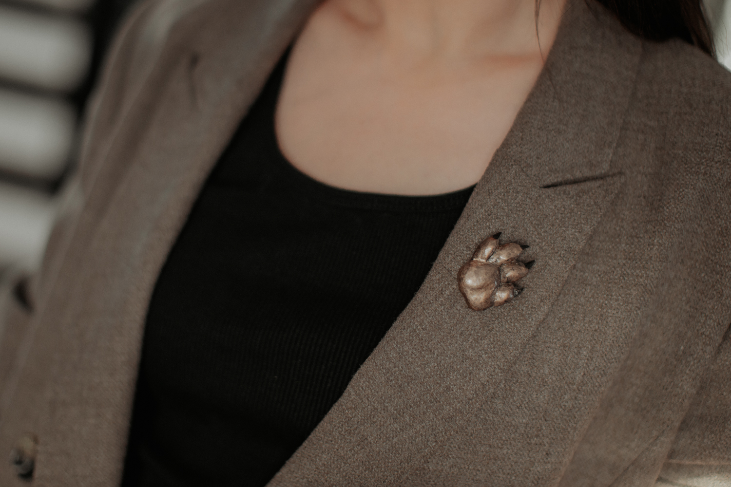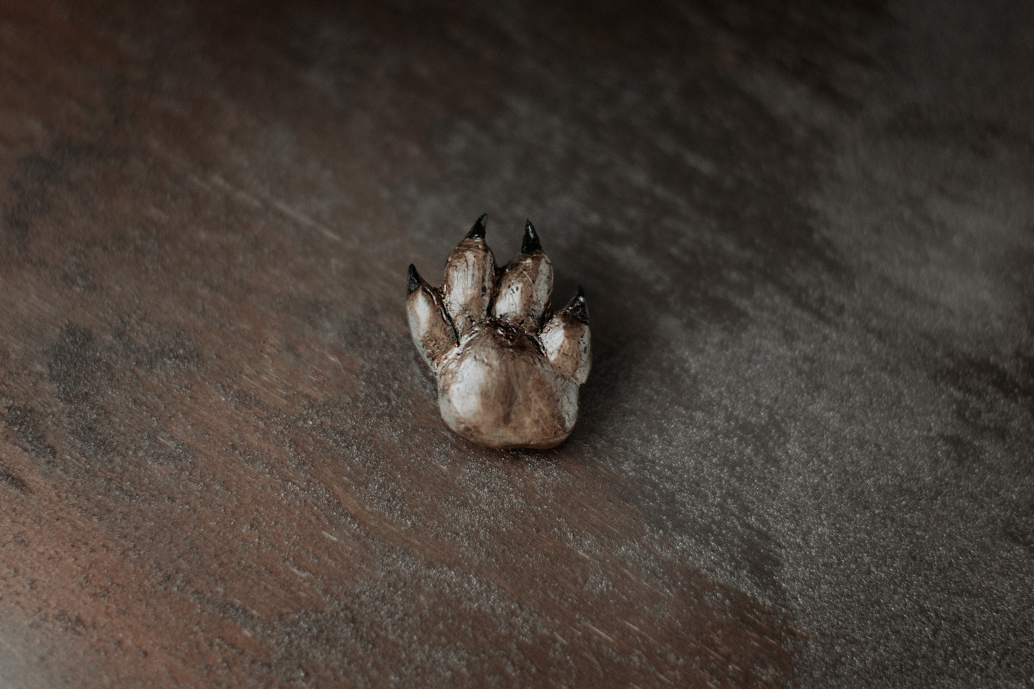 Piespraude “Brūnā ķepa” ir elegants un rotaļīgs aksesuārs. Izgatavota no polimērmāla un apgleznota ar mirdzošu akrila krāsu.