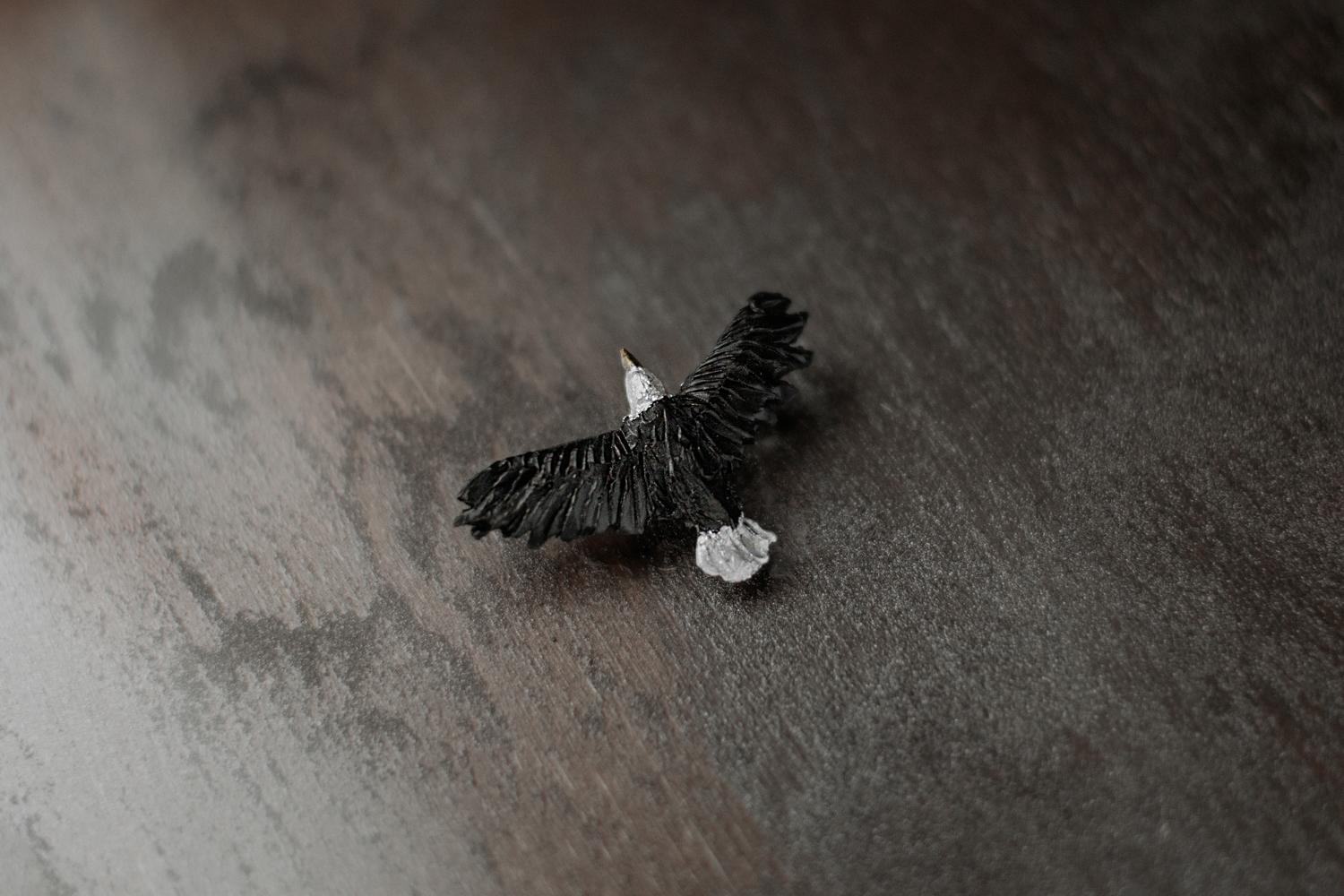 Piespraude “Ērglis” simbolizē spēku, drosmi un neatkarību. Veidota no polimērmāla un apglezaota ar akrila krāsu. Izteiksmīgais dizains padara to par izteiktu akcentu jebkurā tērpā.