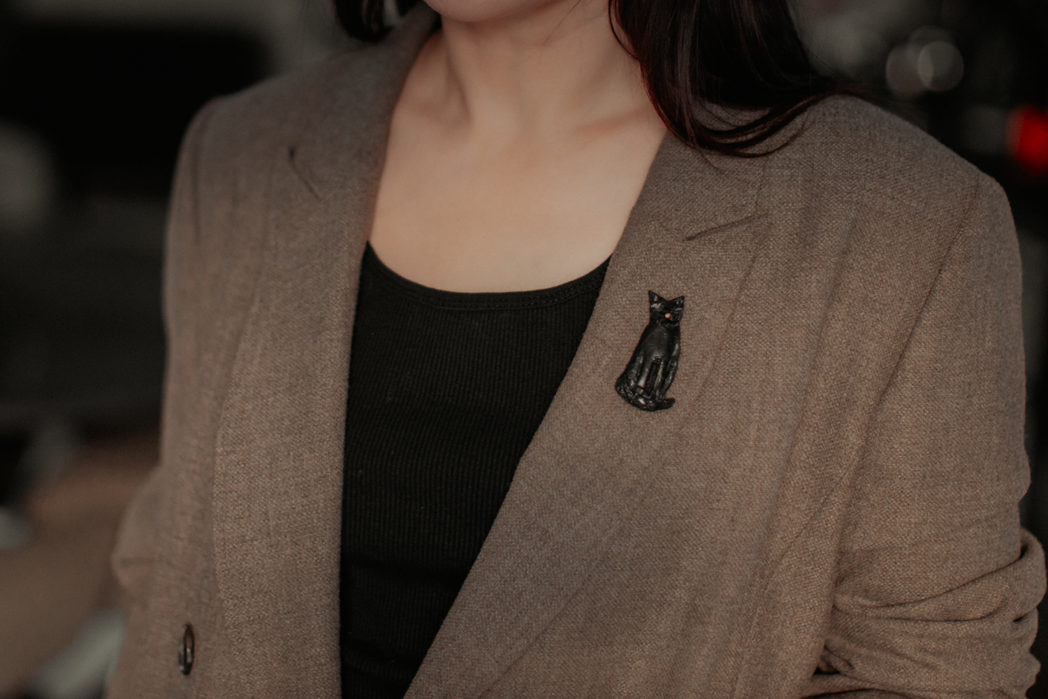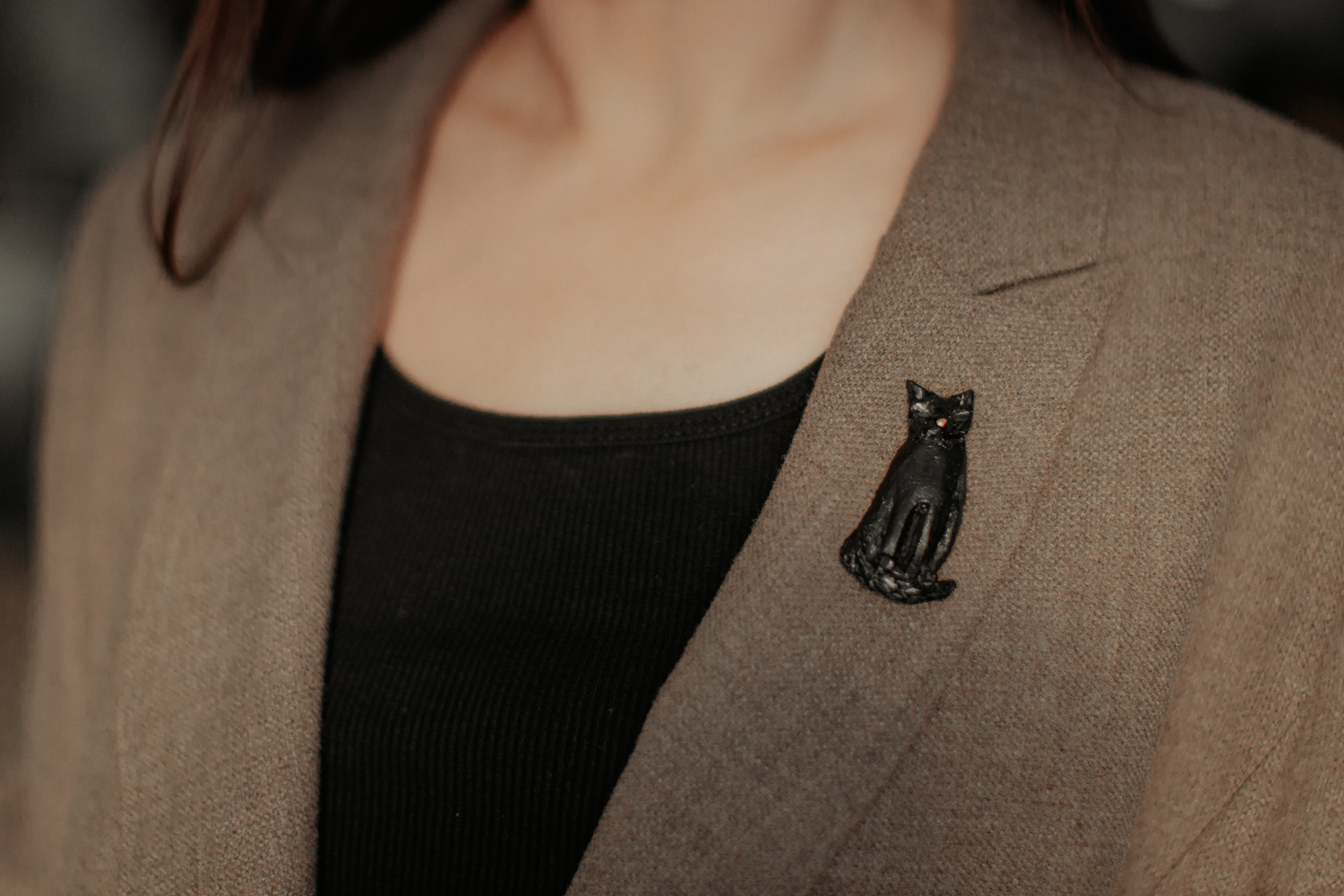 Piespraude “Melnais kaķis” ir izsmalcināta un moderna rotaslieta ar noslēpumainu šarmu. Izgatavota no polimērmāla un apgleznota ar mirdzošu akrila krāsu. Tā lieliski papildina gan ikdienas, gan svētku apģērbu, piešķirot stilīgu un rotaļīgu akcentu. Šī piespraude būs lieliska dāvana cilvēkiem, kas novērtē oriģinālu dizainu un mīl kaķus.
