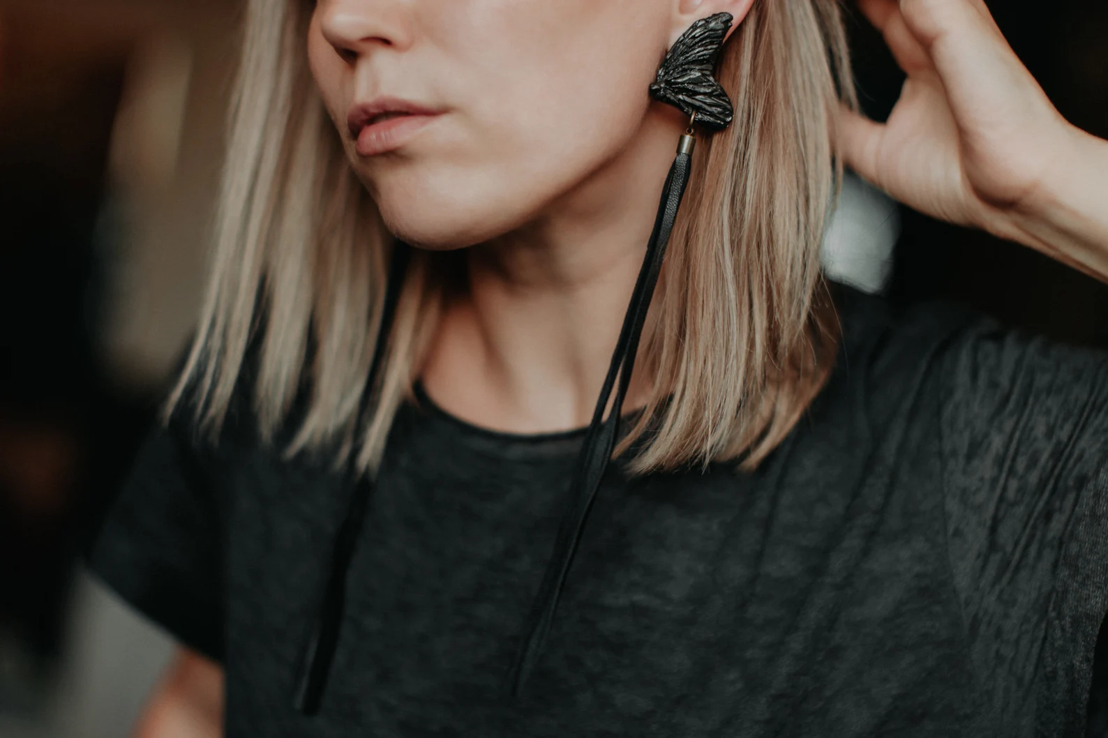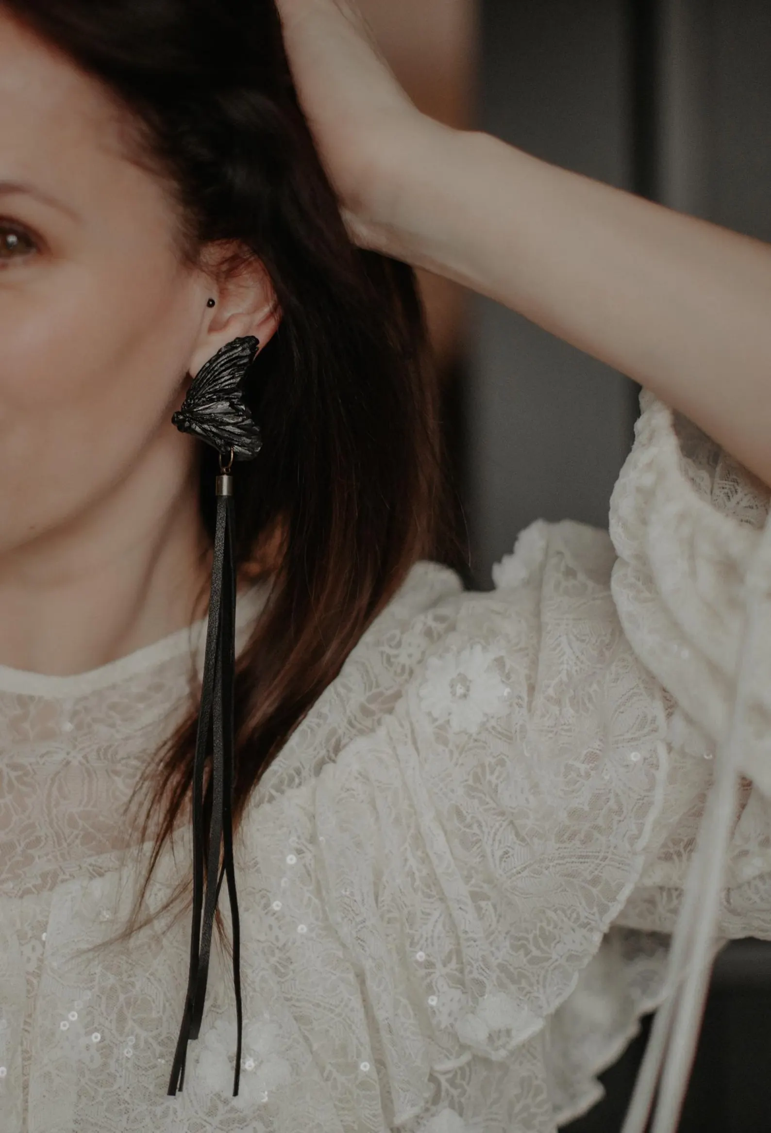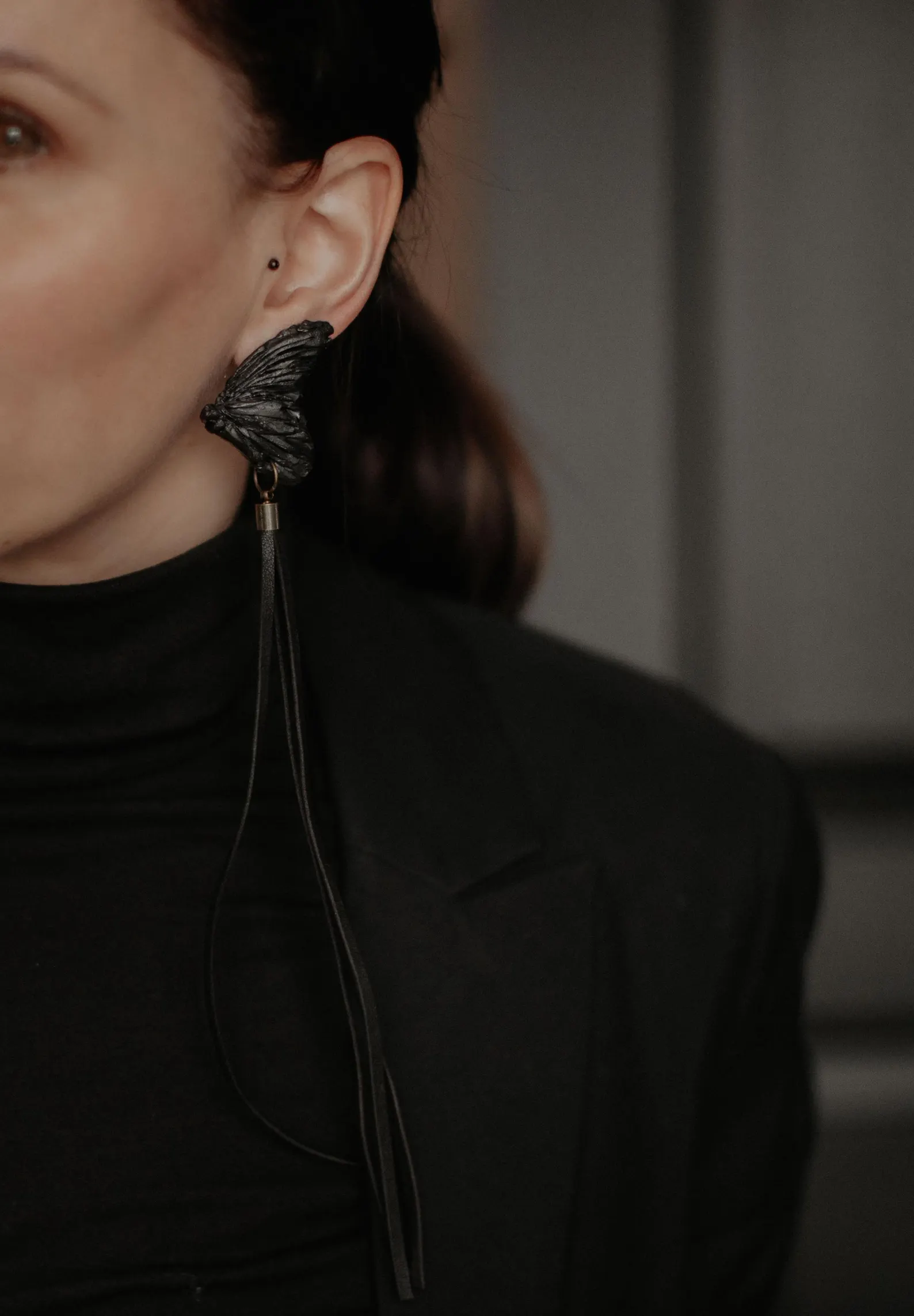 Skaru auskari “Taurenis” ir izsmalcināts roku darbs, veidoti no kvalitatīva polimērmāla, apgleznoti ar akrila krāsām. Papildināti ar garām ādas skarām. Tie piešķir tēlam drosmīgu un modernu noskaņu. Stilīgs akcents ikdienas vai svinīgam izskatam. Pieejami arī klipši.