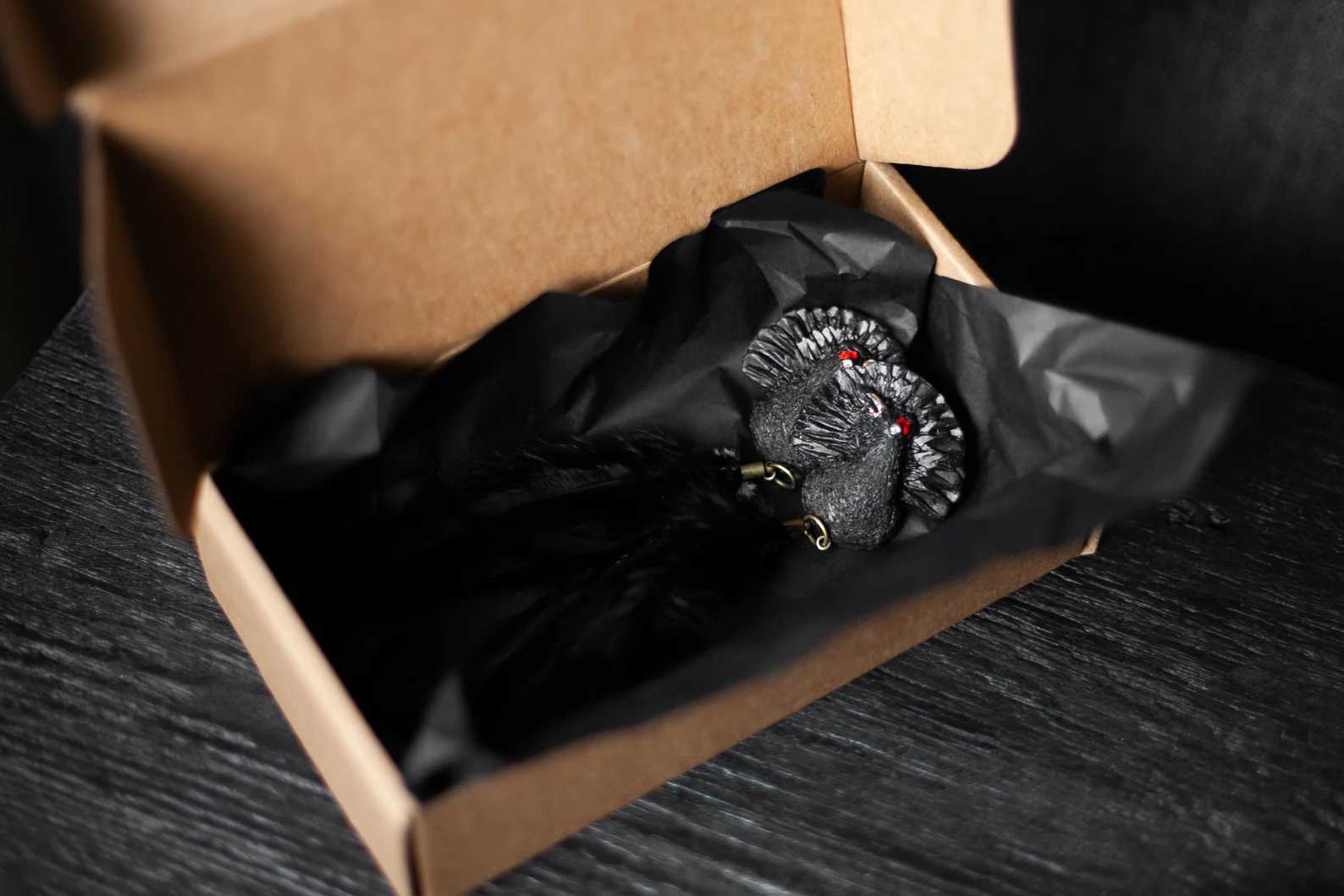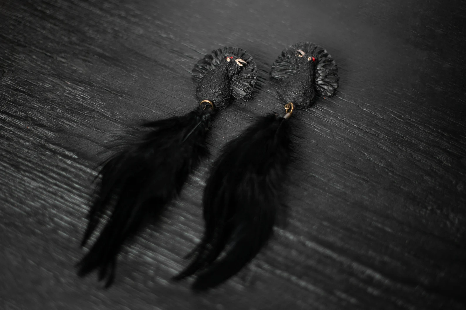 polimērmāls, akrils, dabīgas spalvas, nagliņa – sudrabs.