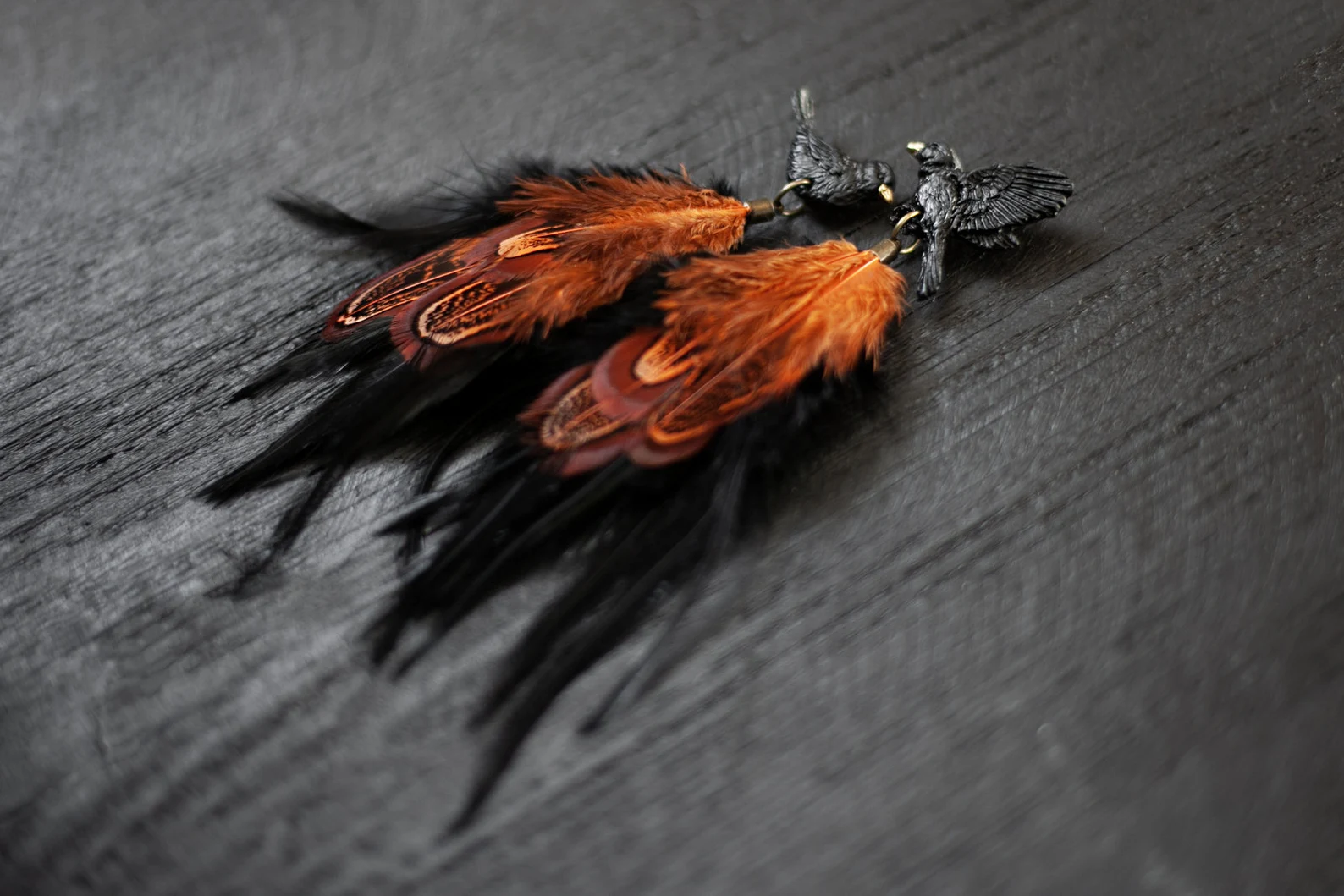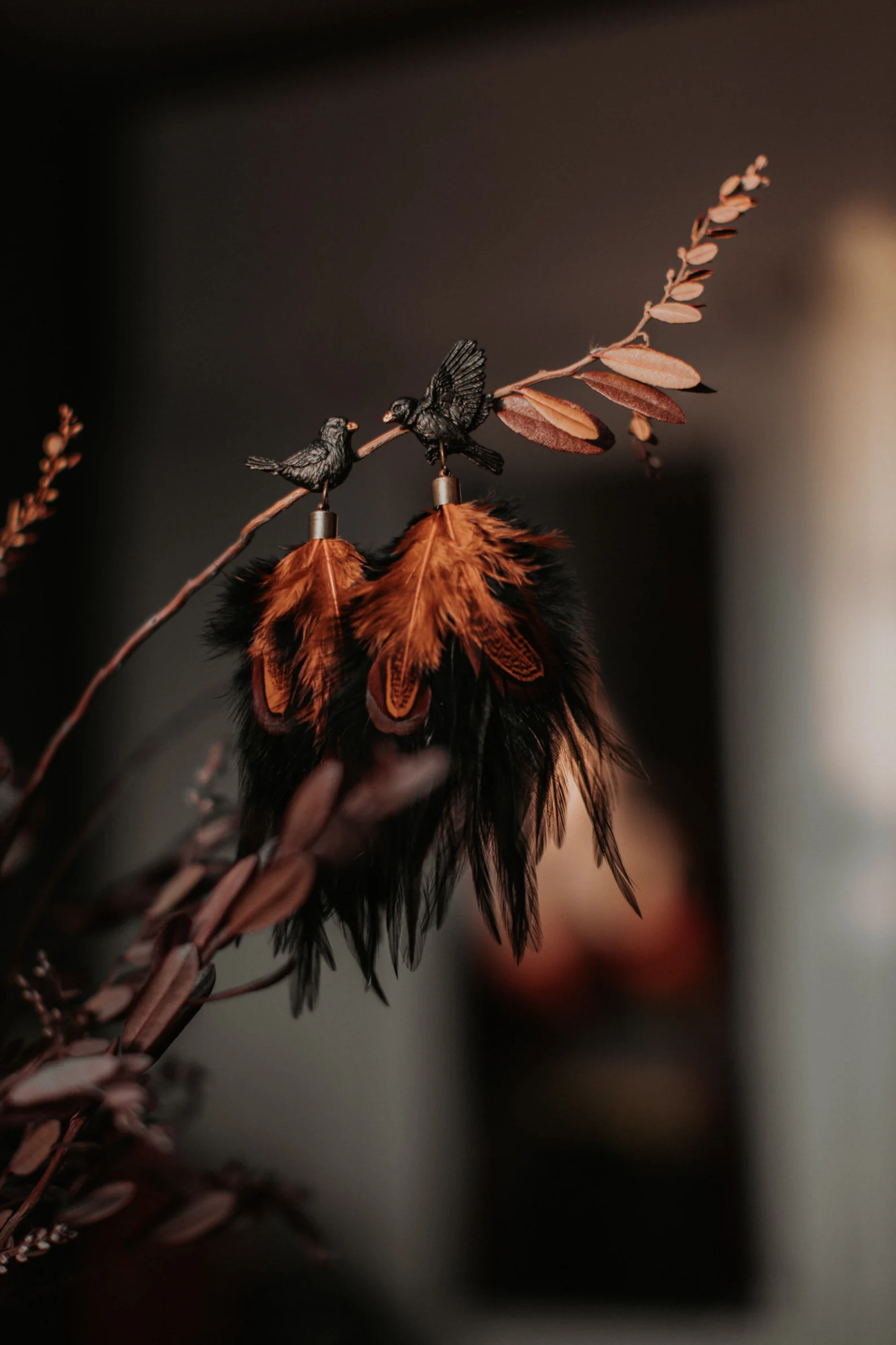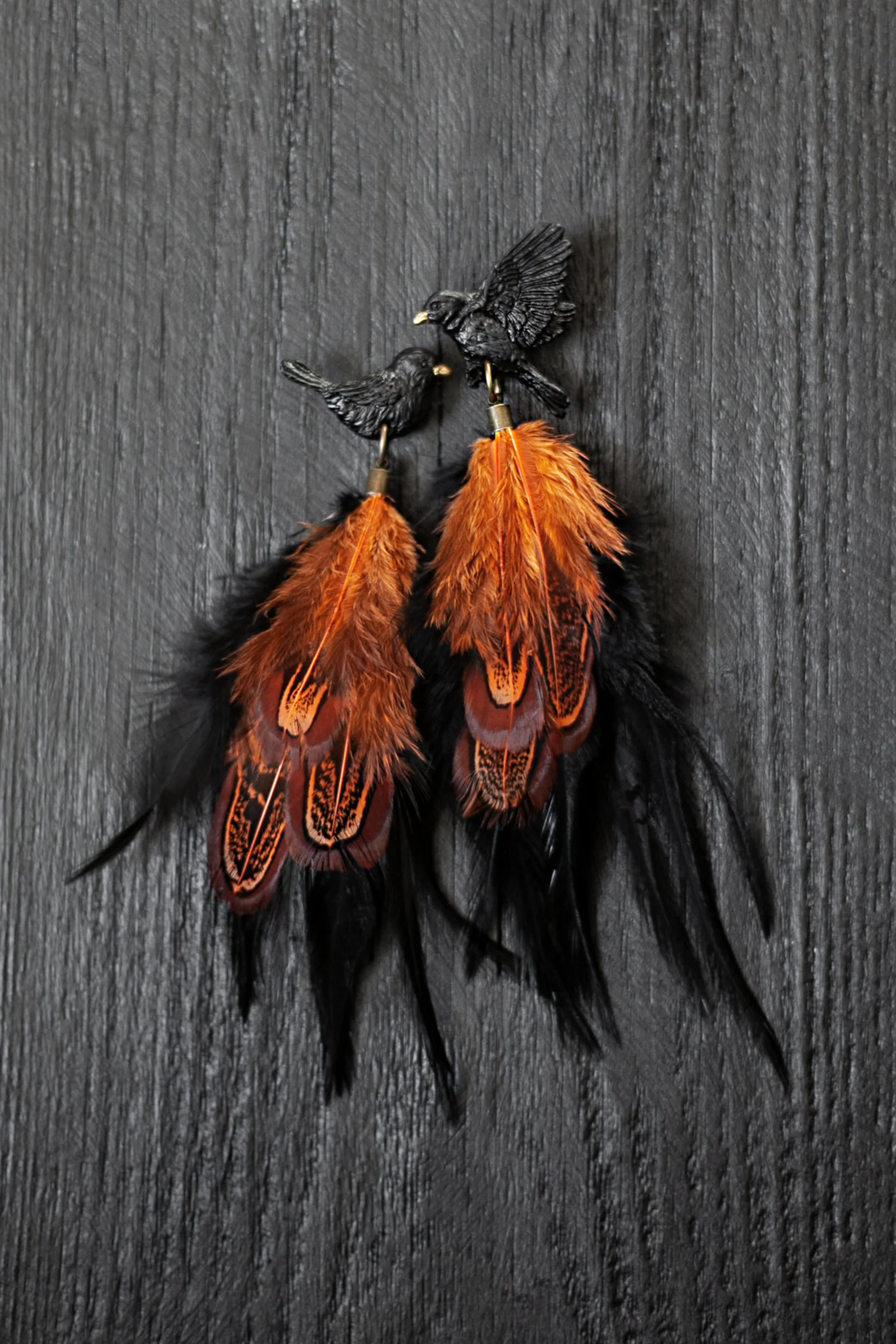 Auskari “Melnais strazds” ar rudām spalvām ir dabas iedvesmota rota ar vieglu, plūstošu dizainu. Izgatavoti no polimērmāla un apgleznoti ar akrila krāsu, papildināti ar dabīgām spalvām, kas rada kustības un viegluma sajūtu. Piemēroti gan ikdienai, gan svinīgām reizēm. Elegants roku darbs sievietei, kura mīl dabas skaistumu. Pieejami arī klipši.