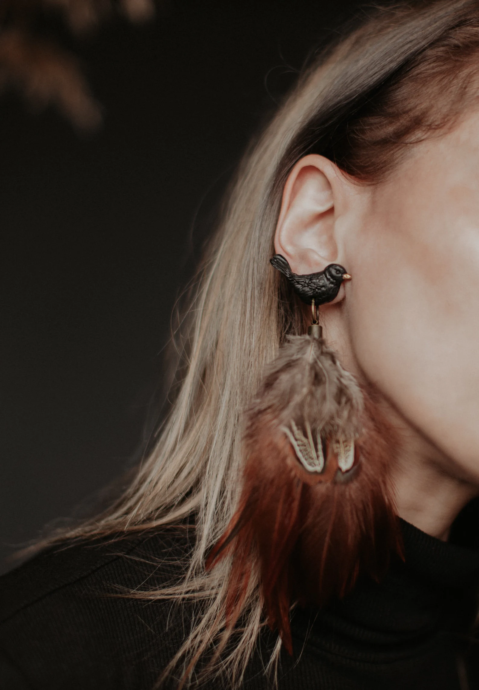Auskari “Melnais strazds” ar spalvām ir dabas iedvesmota rota ar vieglu, plūstošu dizainu. Izgatavoti no polimērmāla un apgleznoti ar akrila krāsu, papildināti ar dabīgām spalvām, kas rada kustības un viegluma sajūtu. Piemēroti gan ikdienai, gan svinīgām reizēm. Elegants roku darbs sievietei, kura mīl dabas skaistumu. Pieejami arī klipši.