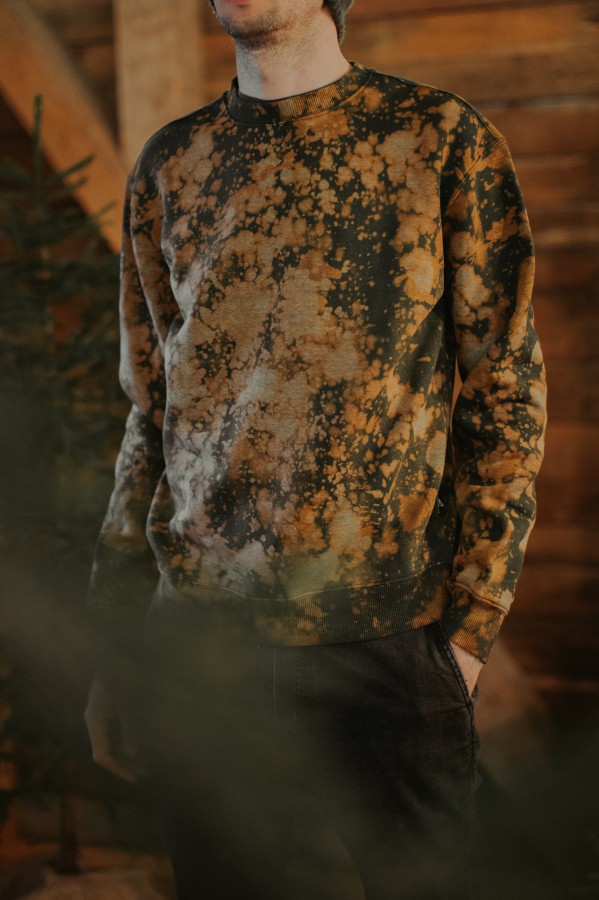 Vīriešu džemperis “Mežs” radīts dabas mīļotājiem – unikāls roku darbs vienā eksemplārā. Apdrukāts ar tekstila krāsām, iedvesmojoties no Latvijas mežu noskaņām.